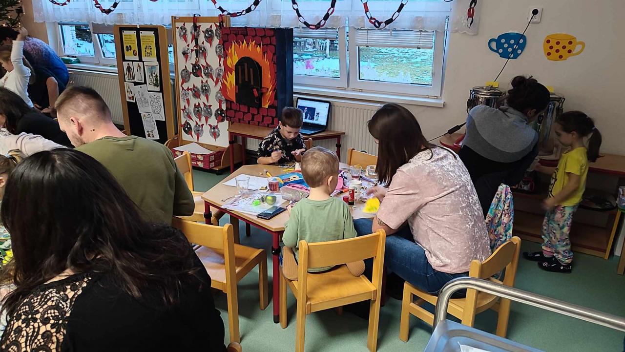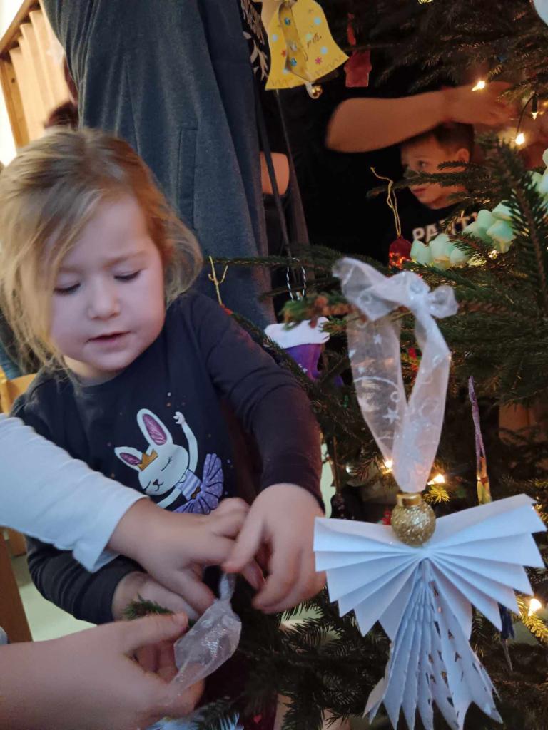 Ve čtvrtek 7.12.2023 proběhla vánoční tvořivá dílna, při které si děti společně s rodiči ozdobili vánoční stromeček vlastními krásnými ozdobičkami.Celou třídou vládla vánoční atmosféra.