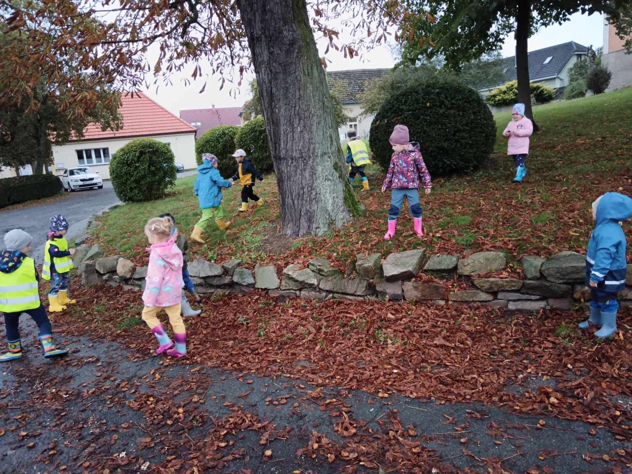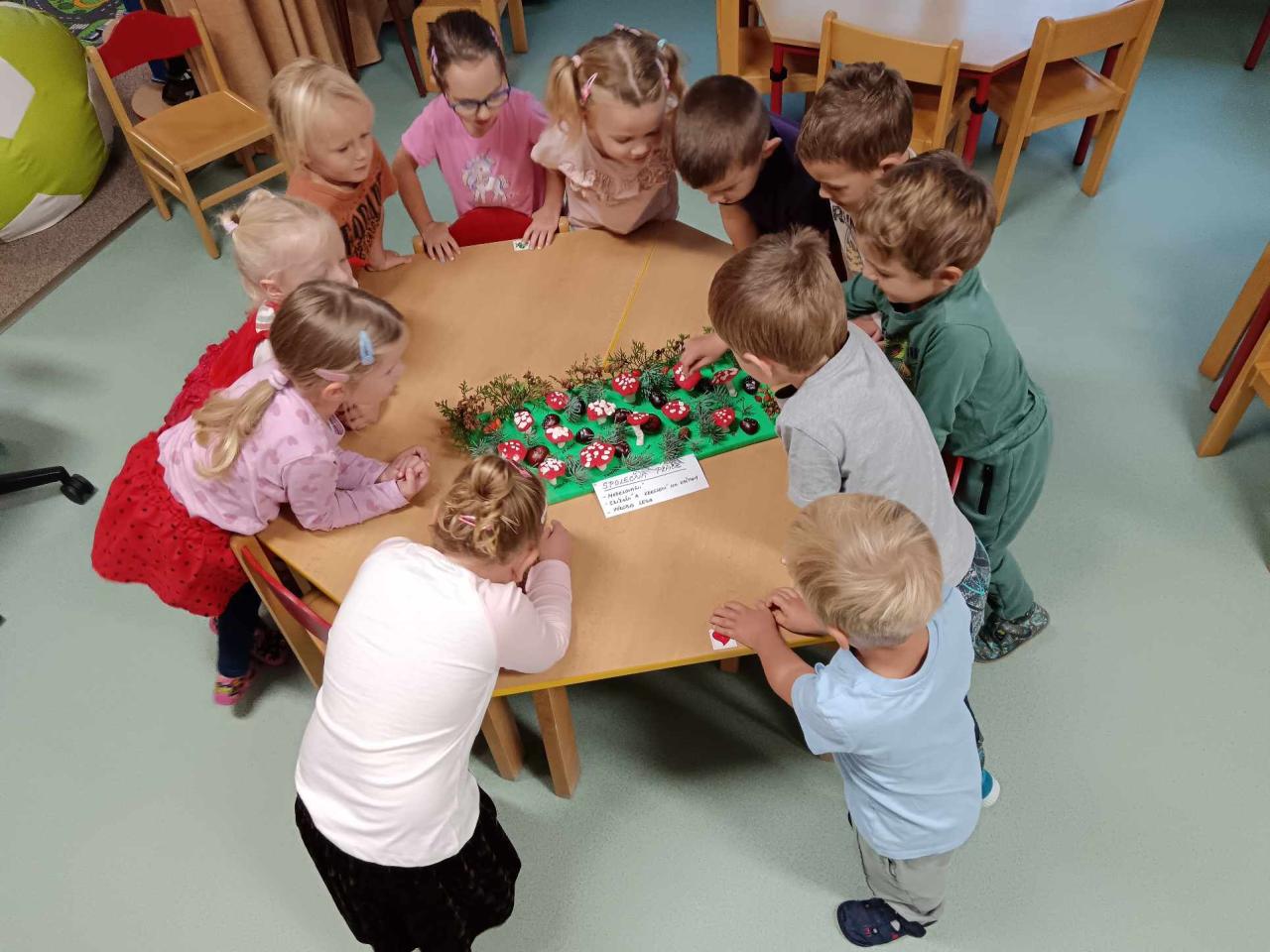 Děti si ve školce nejen hrají a cvičí, ale také si povídají o pravidlech chování ve třídě, o podzimní přírodě a změnách v ní. Společně si vyrobily podzimní les plný muchomůrek a ježečků.