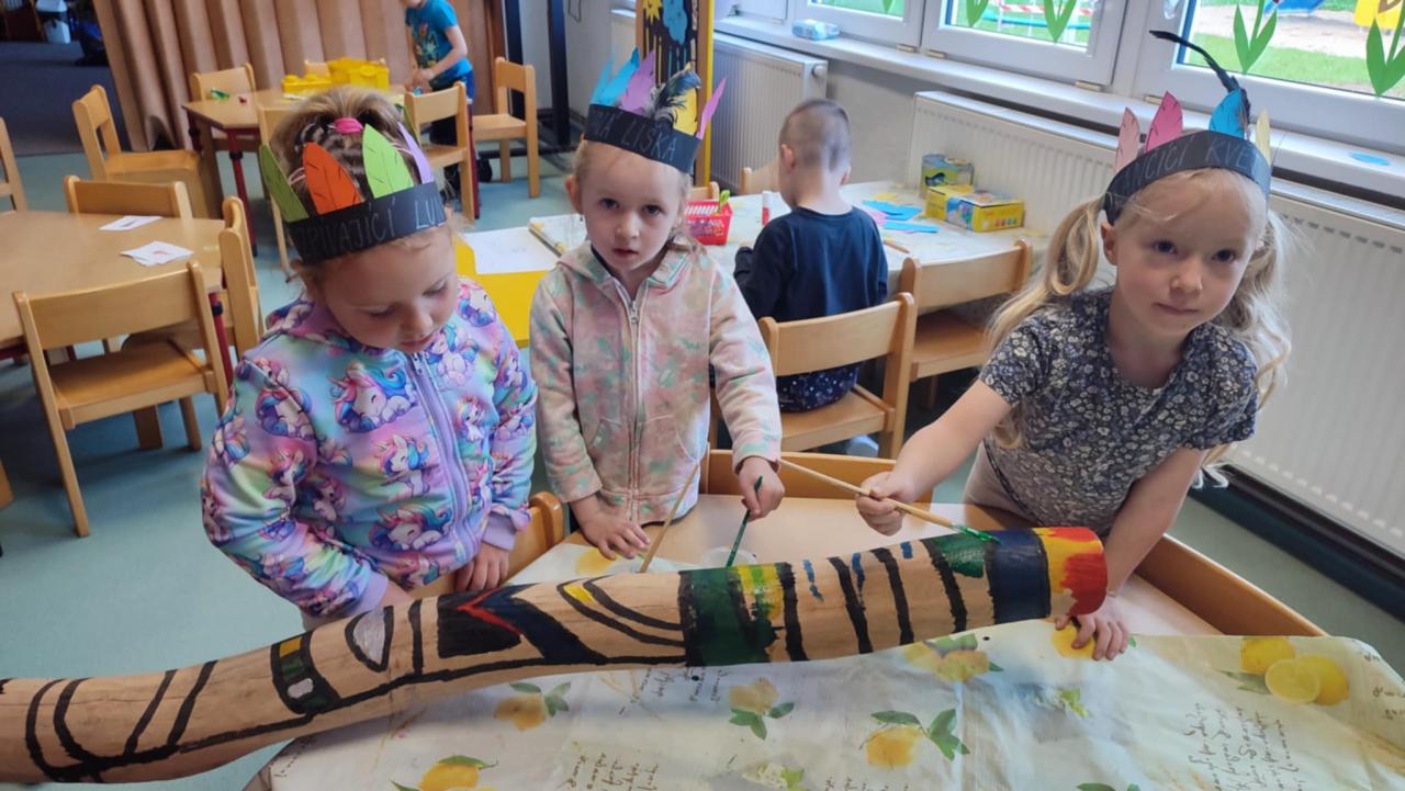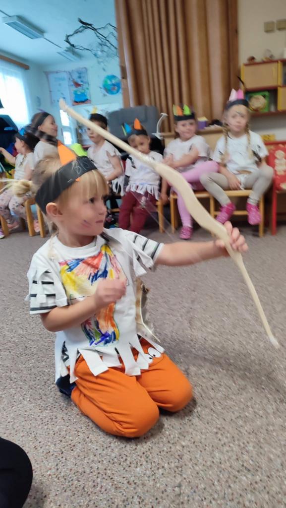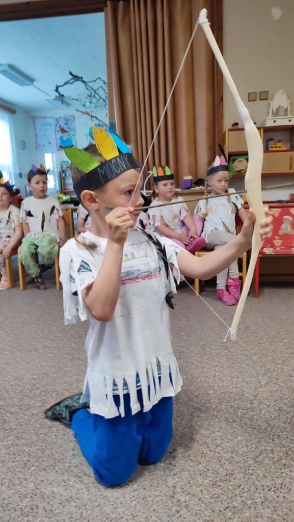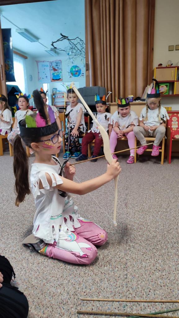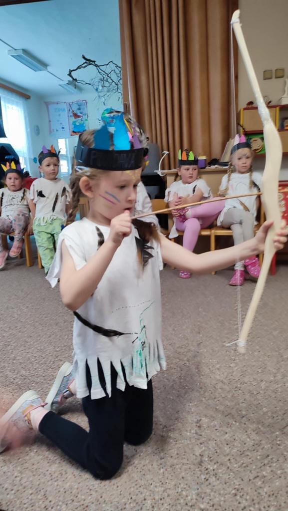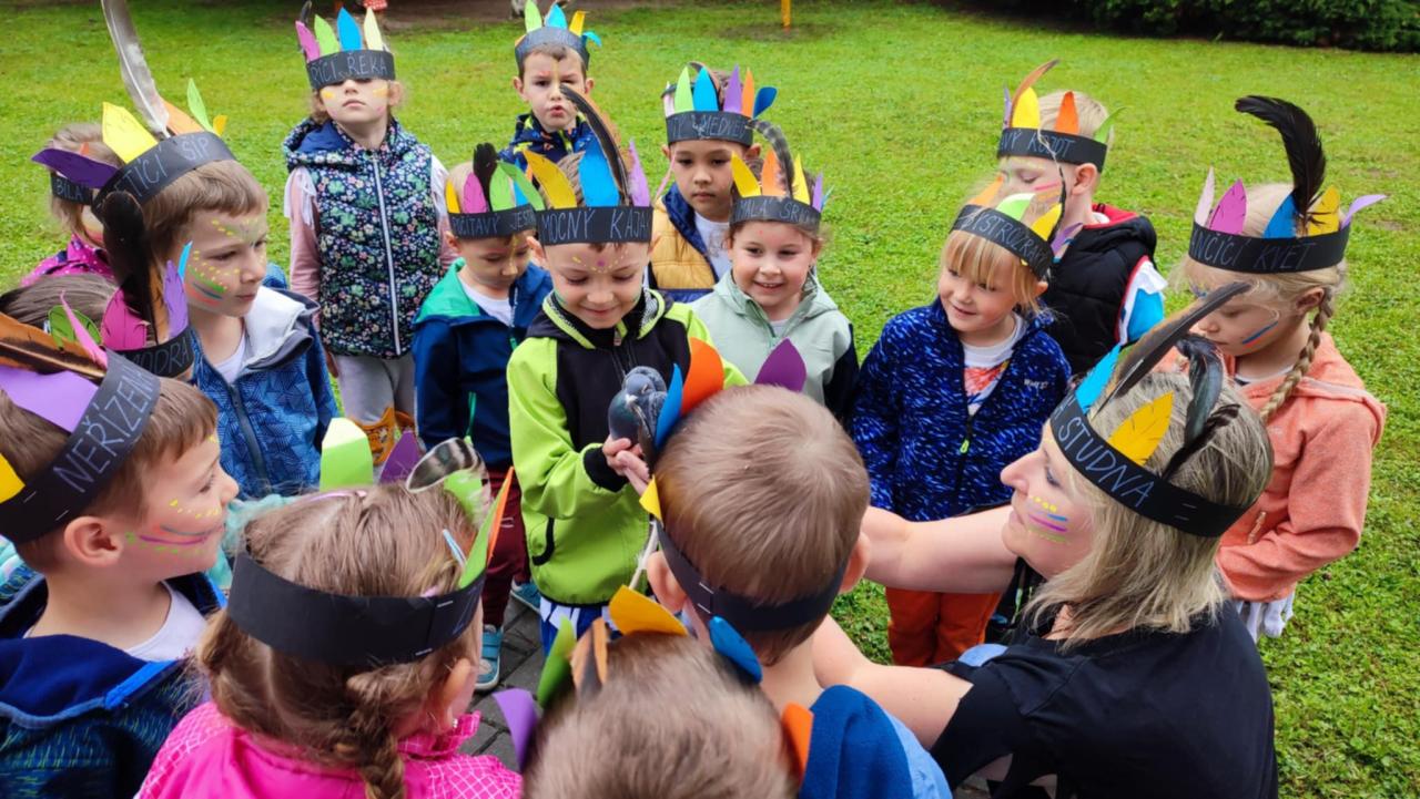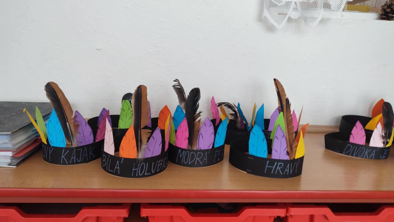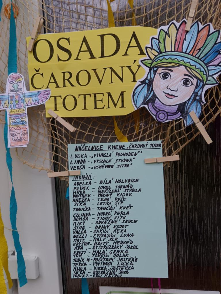 Tento týden se z nás stali praví indiáni z osady "Čarovný totem". Aby jsme se stali indiánem, museli jsme si vyrobit čelenky, trika, ohniště, totem a nakonec jsme si dali nápoj přátelství, stříleli z luku a zachránili zajaté holubice.