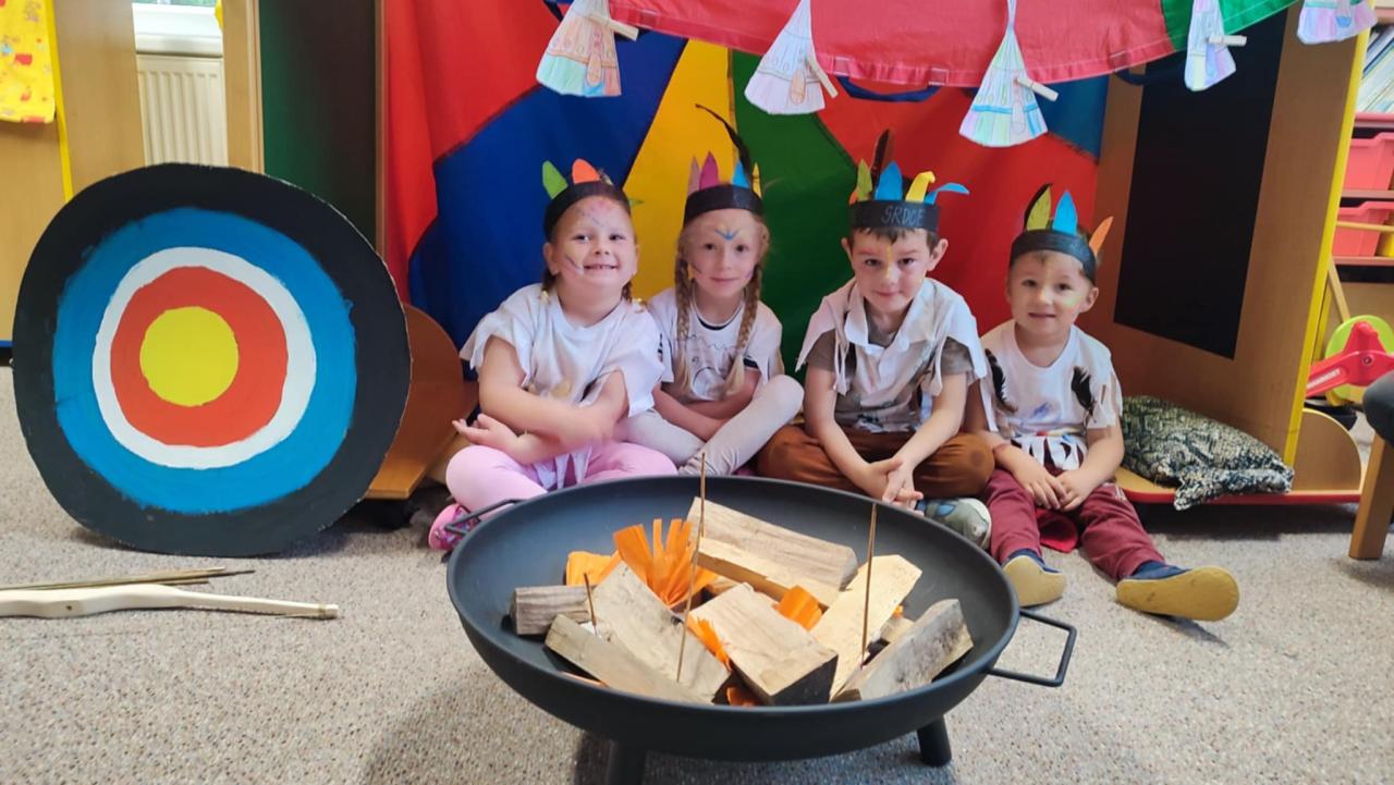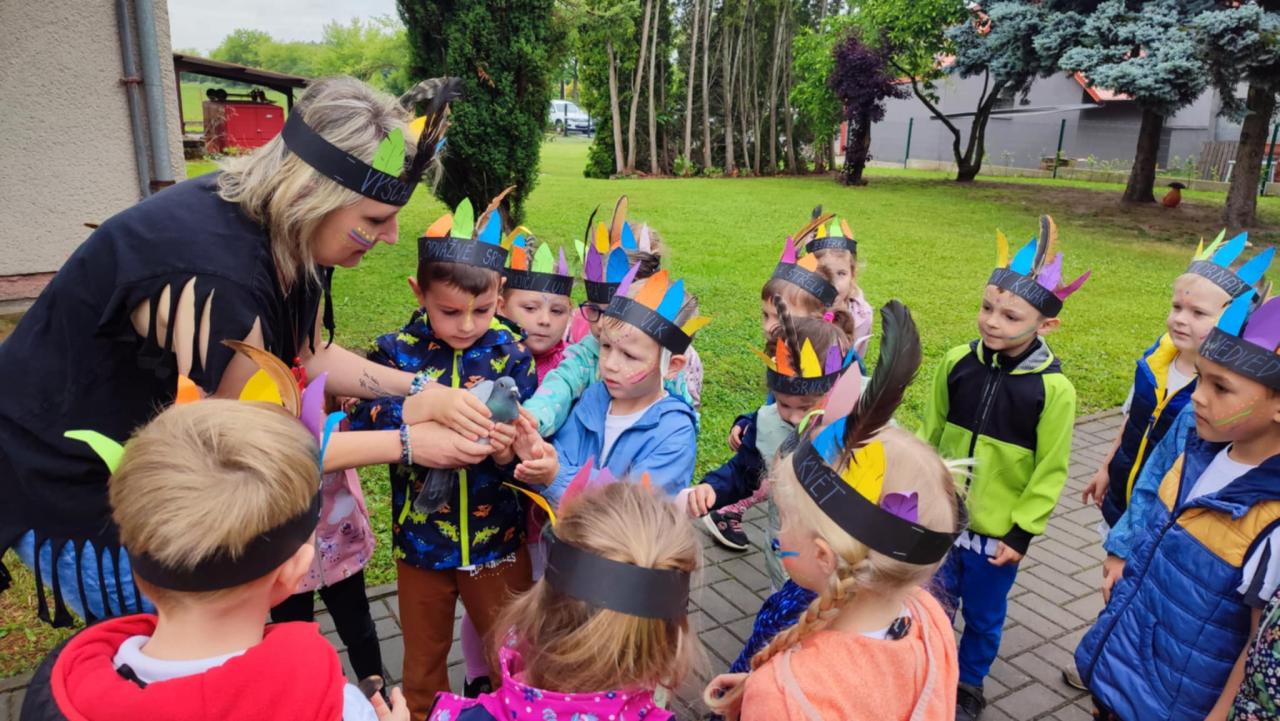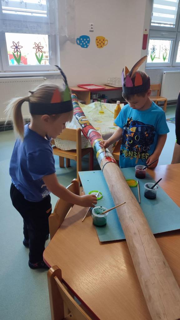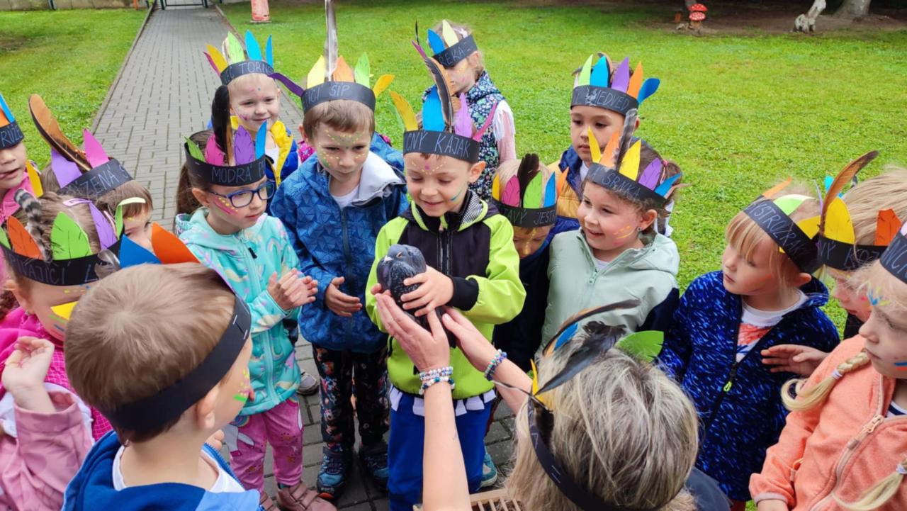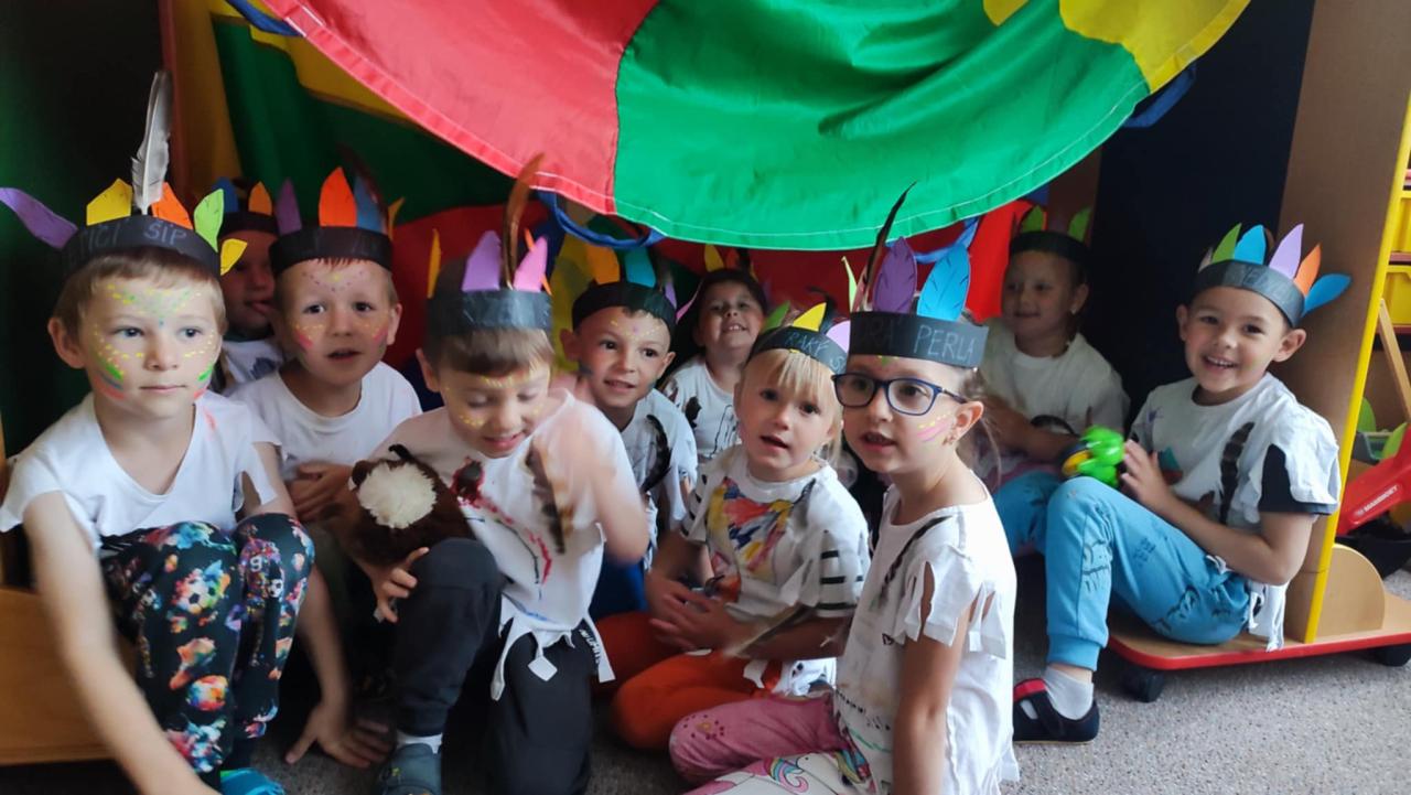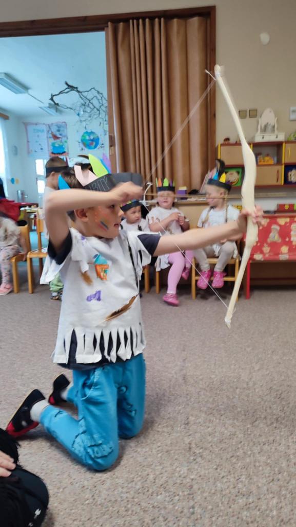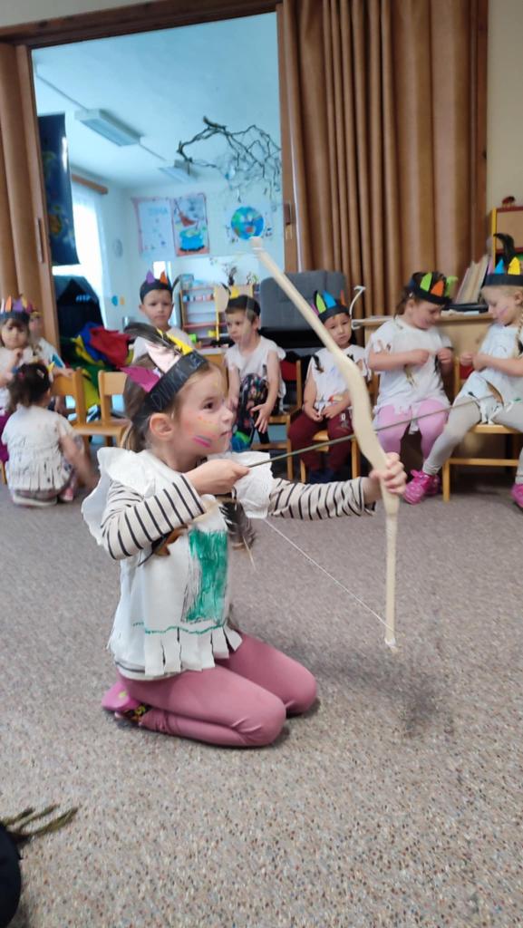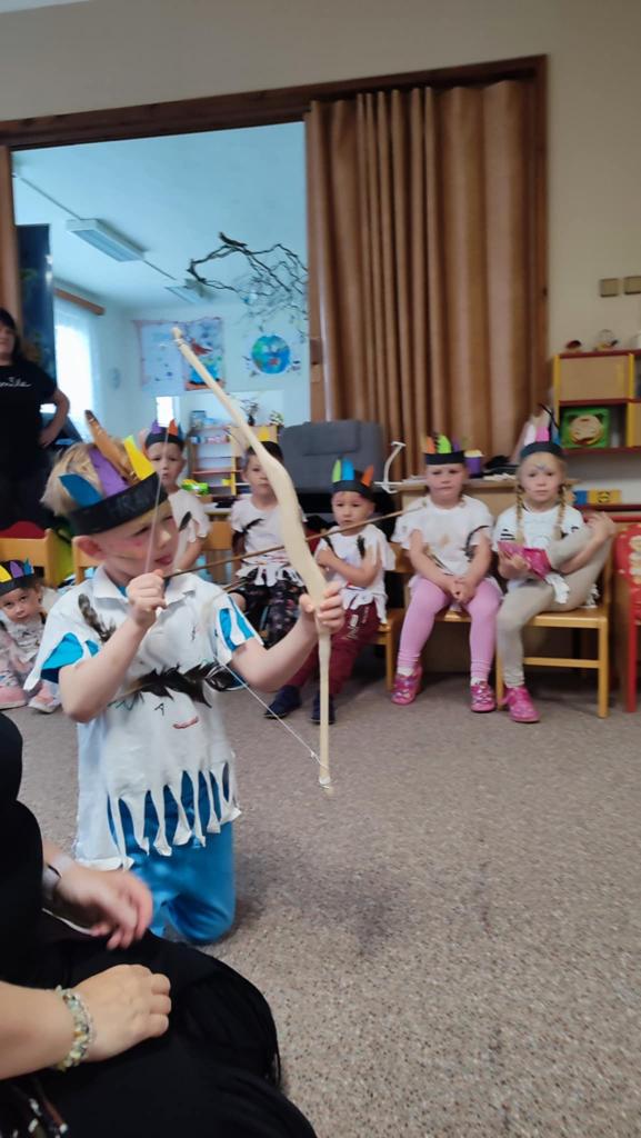 Tento týden se z nás stali praví indiáni z osady "Čarovný totem". Aby jsme se stali indiánem, museli jsme si vyrobit čelenky, trika, ohniště, totem a nakonec jsme si dali nápoj přátelství, stříleli z luku a zachránili zajaté holubice.