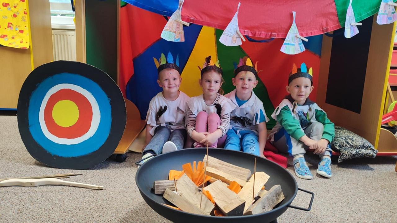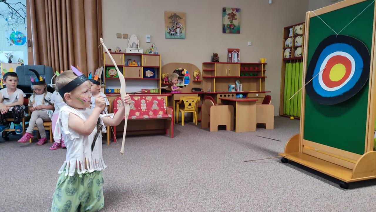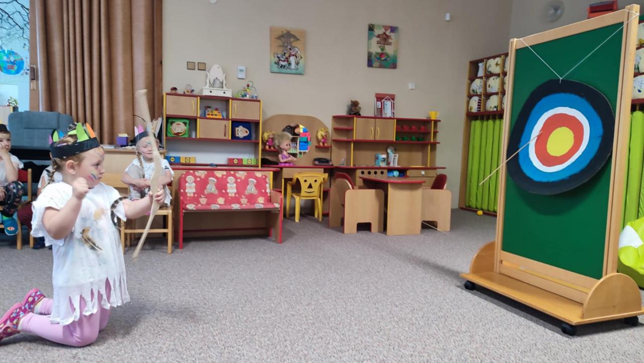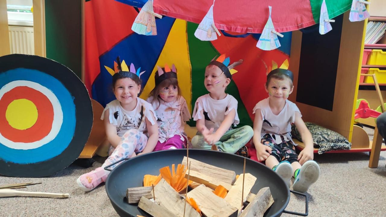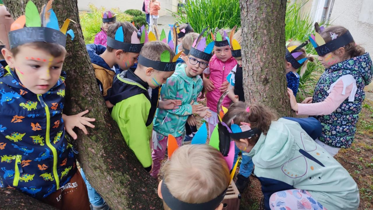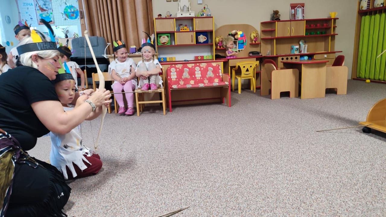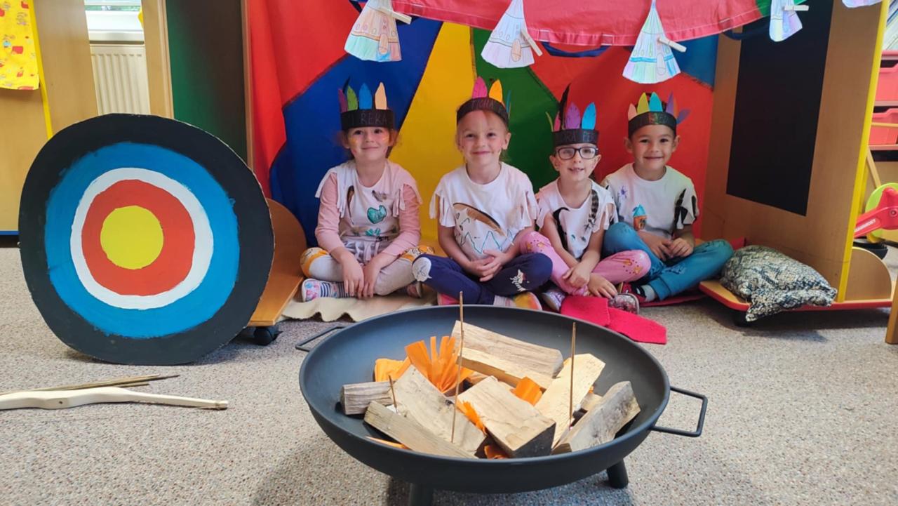 Tento týden se z nás stali praví indiáni z osady "Čarovný totem". Aby jsme se stali indiánem, museli jsme si vyrobit čelenky, trika, ohniště, totem a nakonec jsme si dali nápoj přátelství, stříleli z luku a zachránili zajaté holubice.