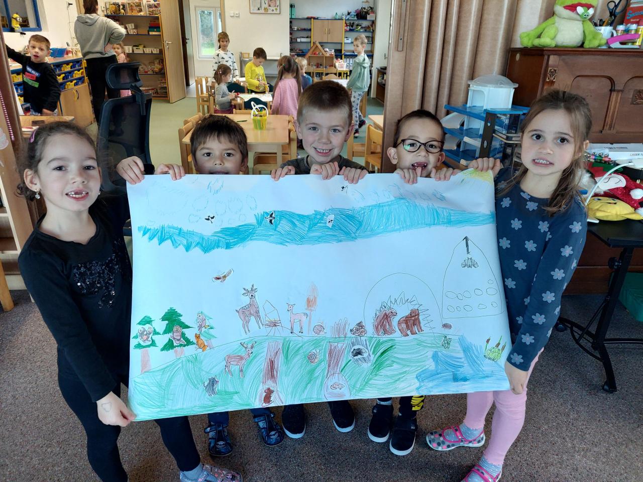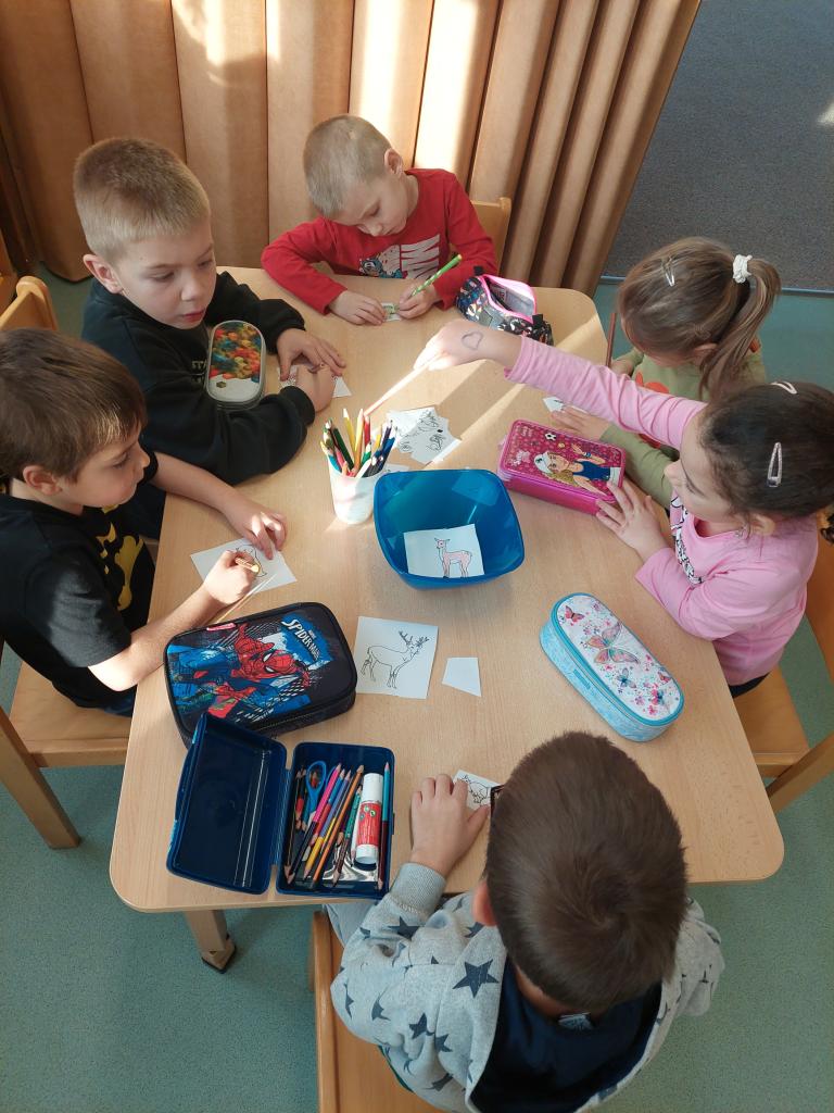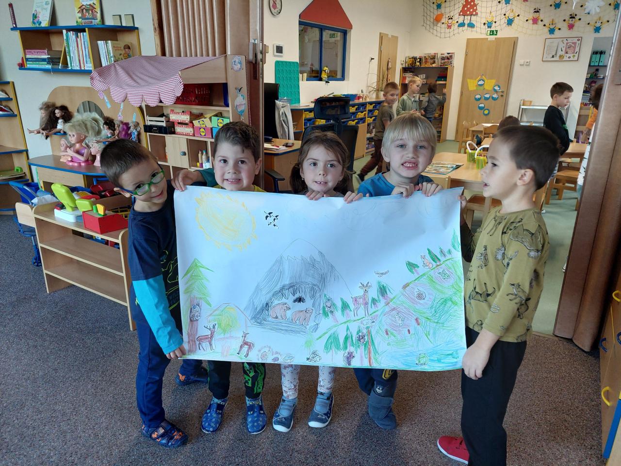 Děti si ve skupinkách vytvořily společné koláže, přírody a zvířátek připravujících se na zimu.