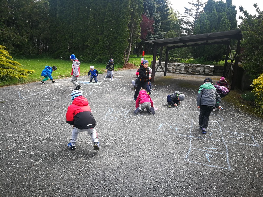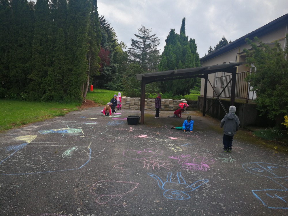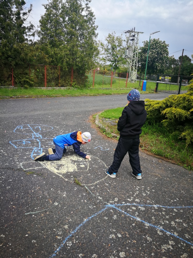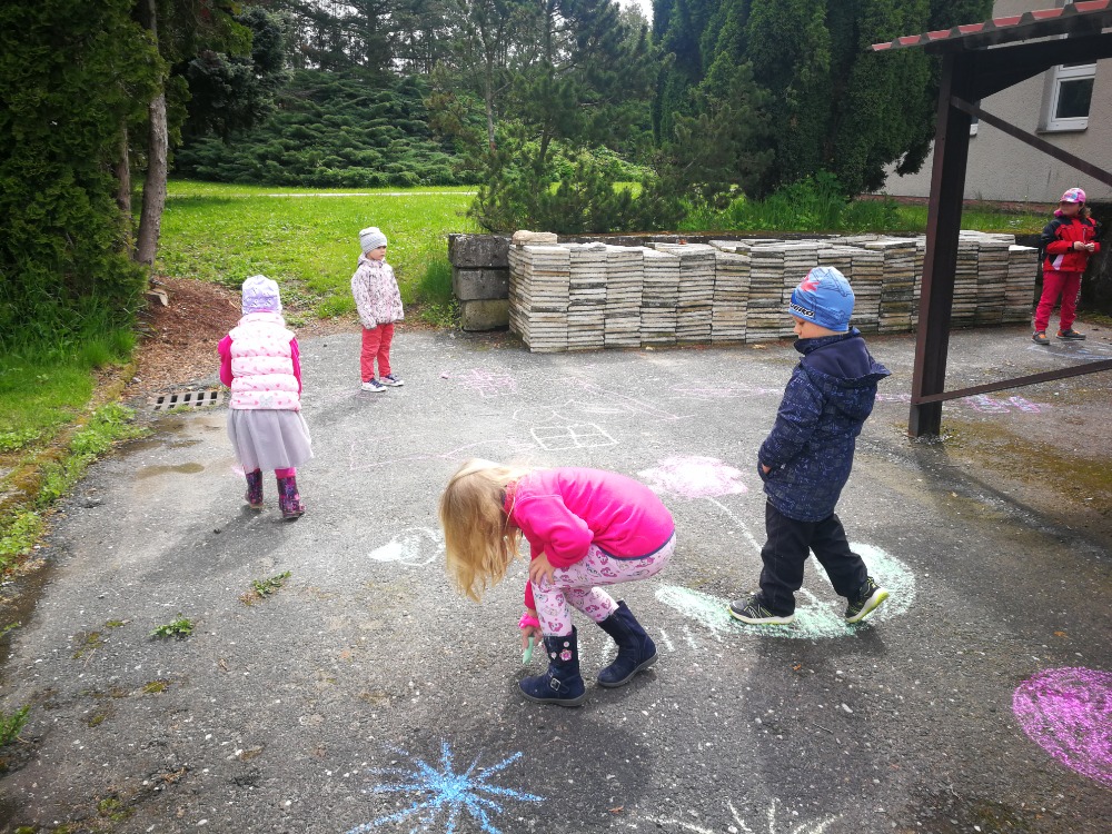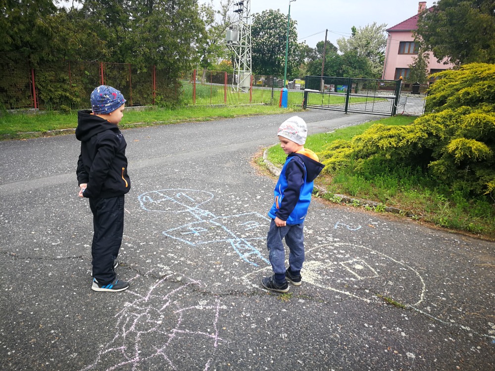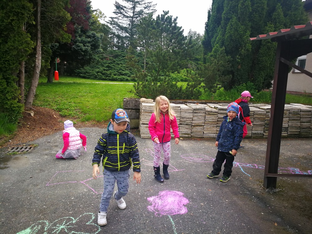 V pátek 17.května si děti ze třídy "Sluníčka" obměnily pobyt venku a vyzdobily svými obrázky příjezdovou cestu ke školce.