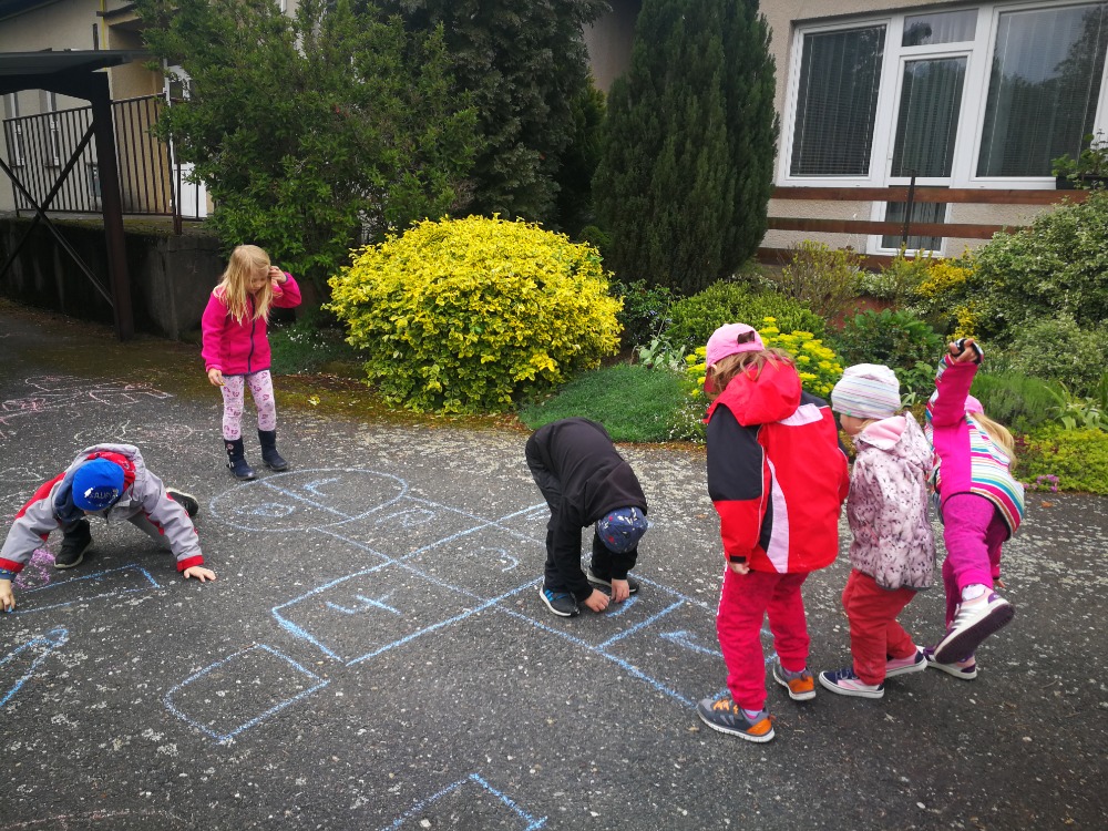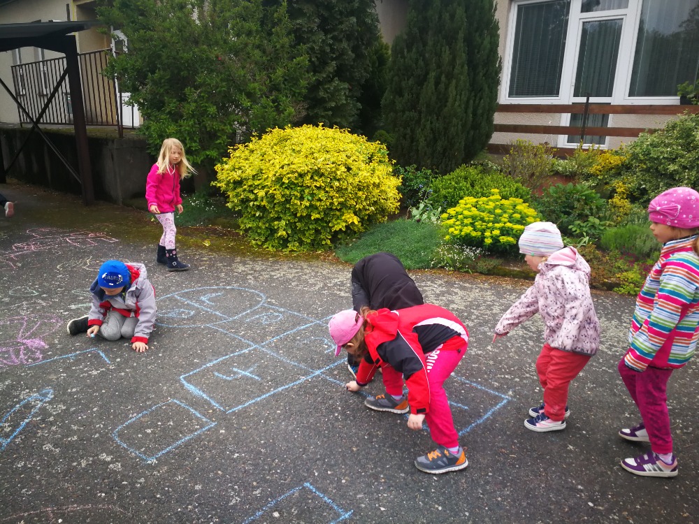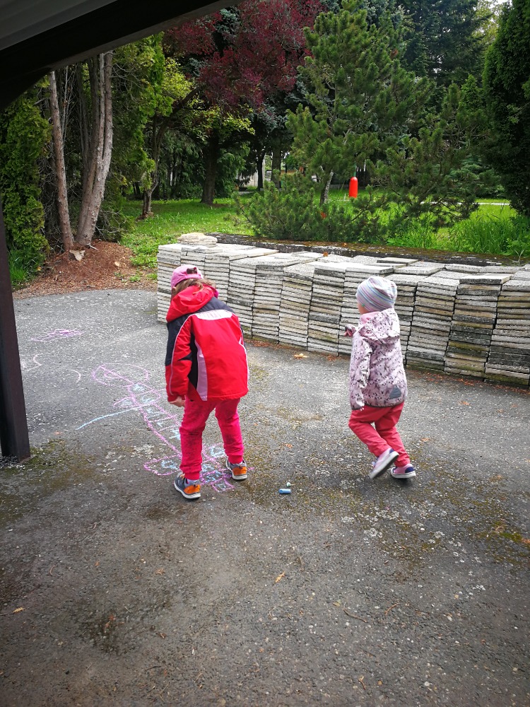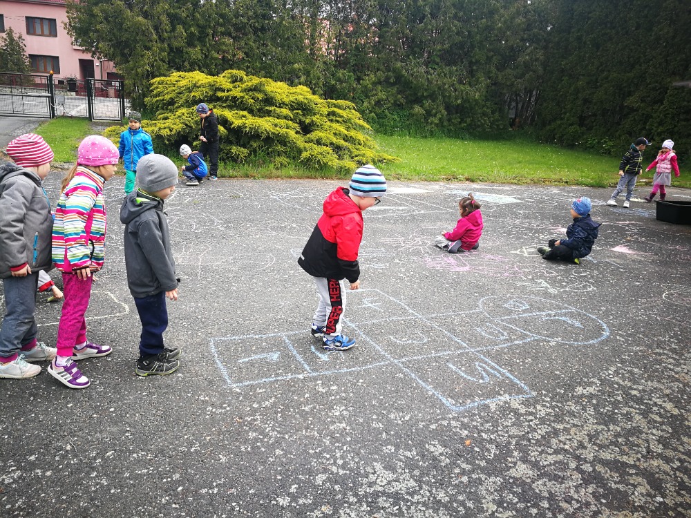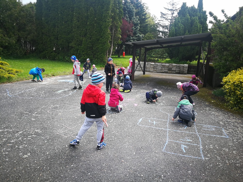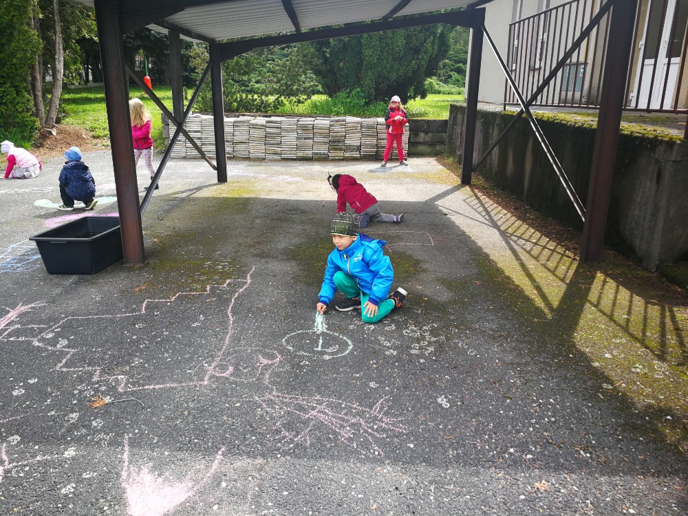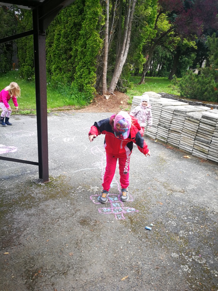 V pátek 17.května si děti ze třídy "Sluníčka" obměnily pobyt venku a vyzdobily svými obrázky příjezdovou cestu ke školce.