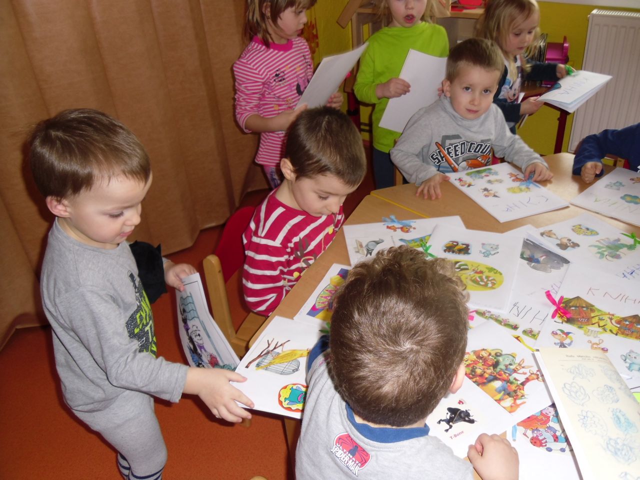 Březen je měsíc knih a tak i v naší školce jsme si povídali o knížkách, vyráběli jsme záložky a dokonce i vlastní knížky. Prohlíželi jsme si knížky, které si děti donesly z domova a v pondělí 19.3.2018 jsme se šli podívat do místní knihovny. Paní knihovnice nám pověděla o knihovně, dětských knížkách a nakonec jsme si vybarvovali známé postavičky z večerníčků.