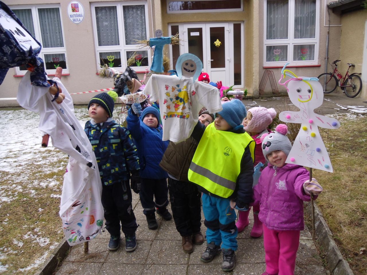 I letos se děti připravily na vítání jara. Ve třídě si děti společně vyrobily velkou Morenu a doma s rodiči pak každé s dětí svou malou Morenu. V úterý 20.3.2018 pak natěšené děti, i se svými Morenami, vycházkou došly k řece Doubravě. Za doprovodu písniček a básniček pak každé s dětí hodilo do řeky svou malou Moranu a následně i společnou velkou Moranu. Společně tak symbolicky pohřbily zimu a těší se na prosluněné jaro.