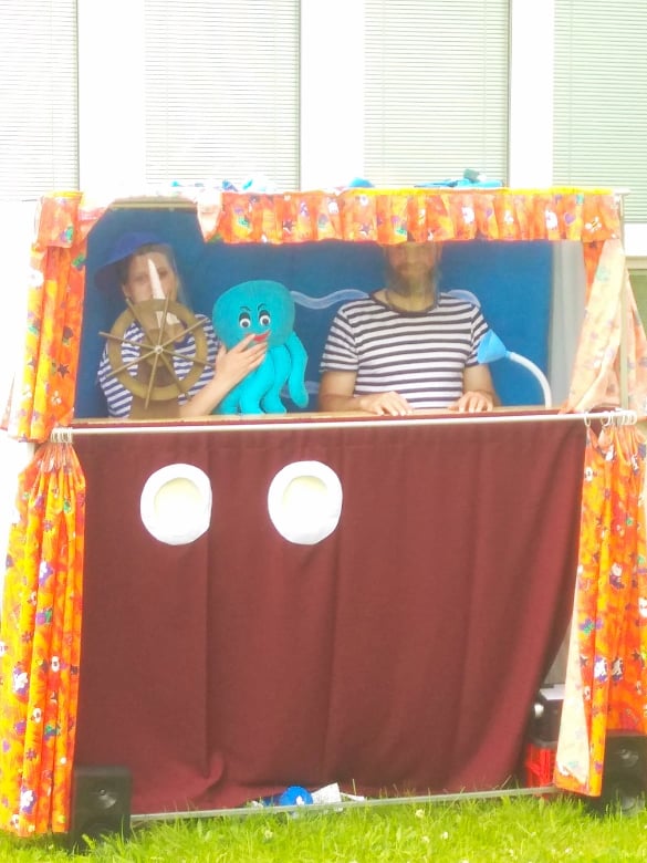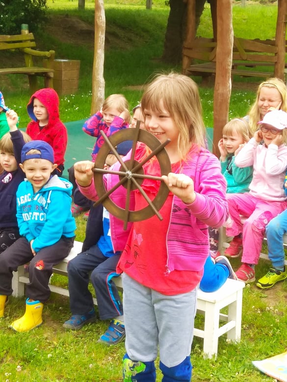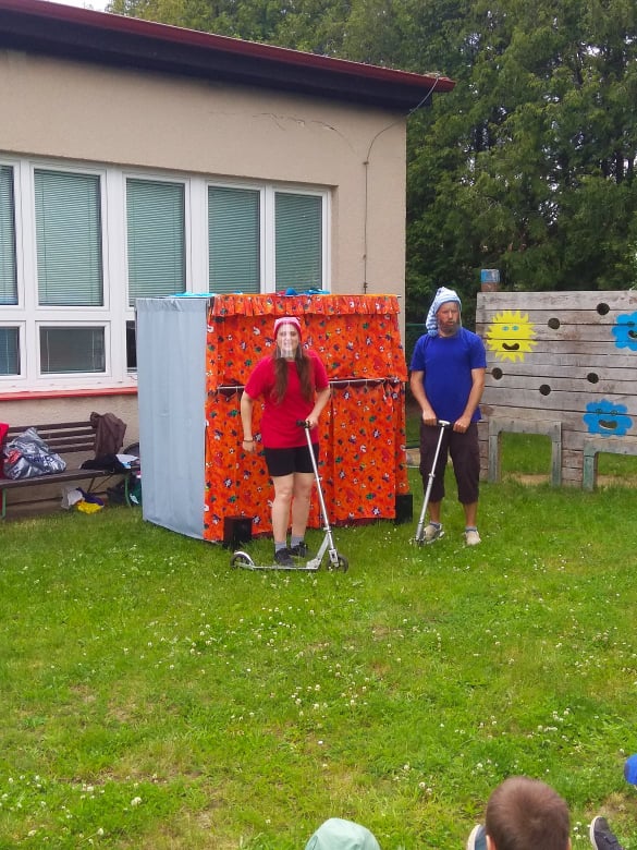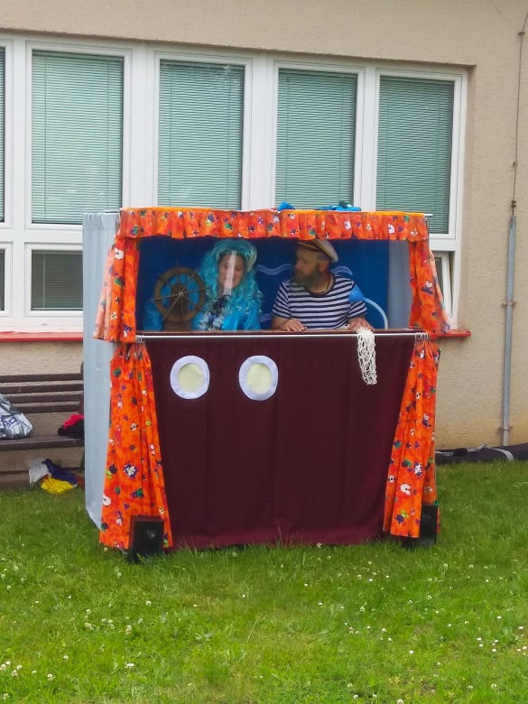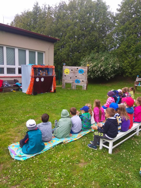 Dne 2.6.2020 k nám do školky zavítalo divadlo Koloběžka.Představení probíhalo na školní zahradě a dětem se velmi líbilo.