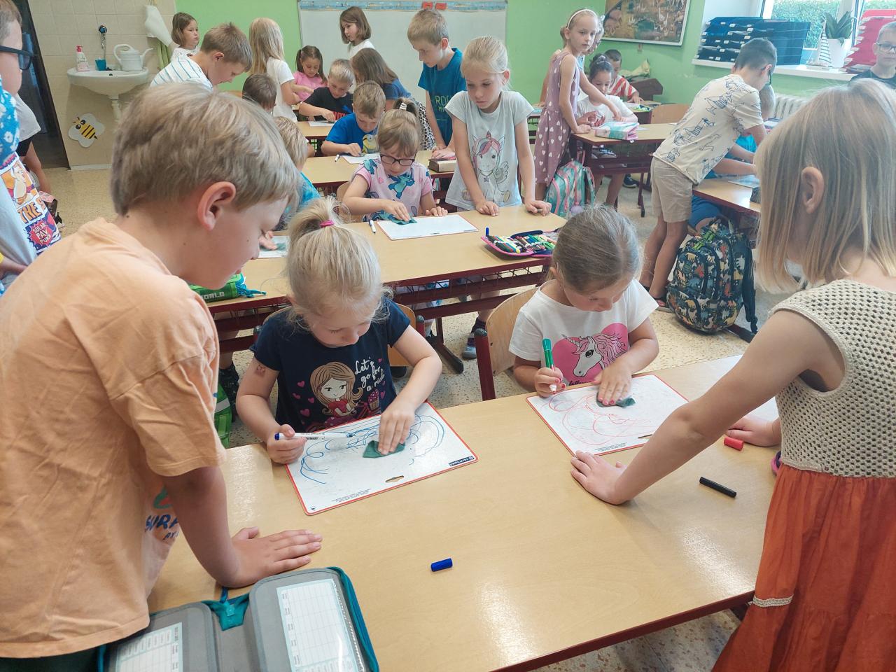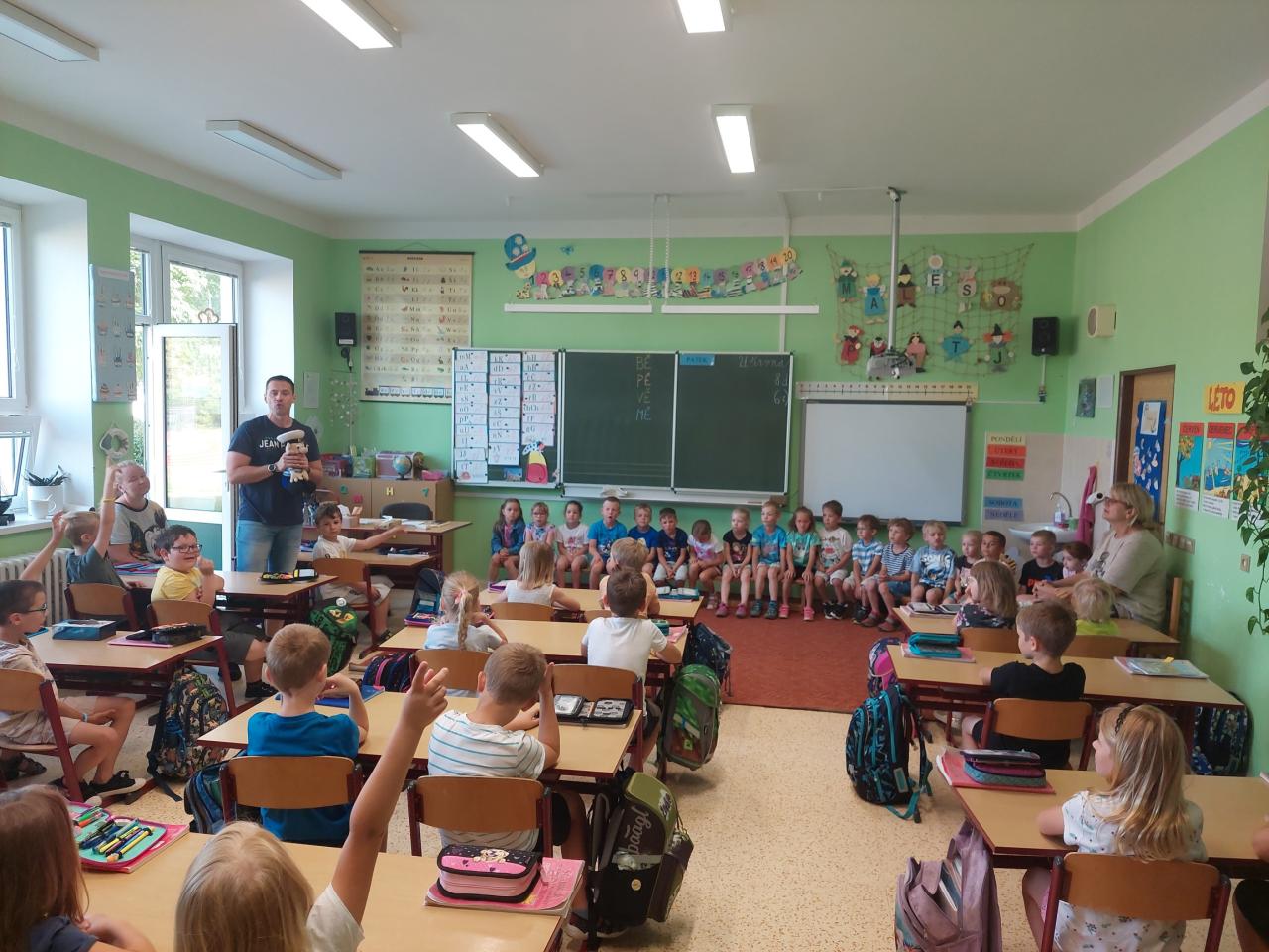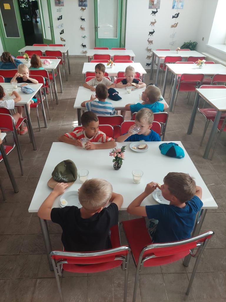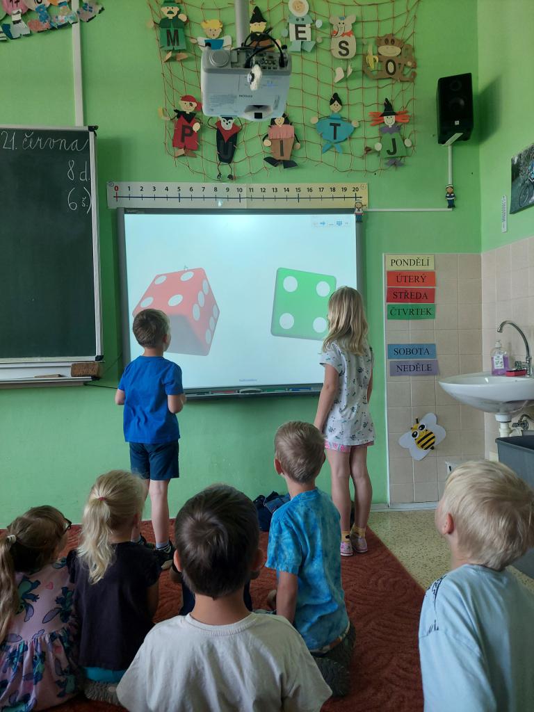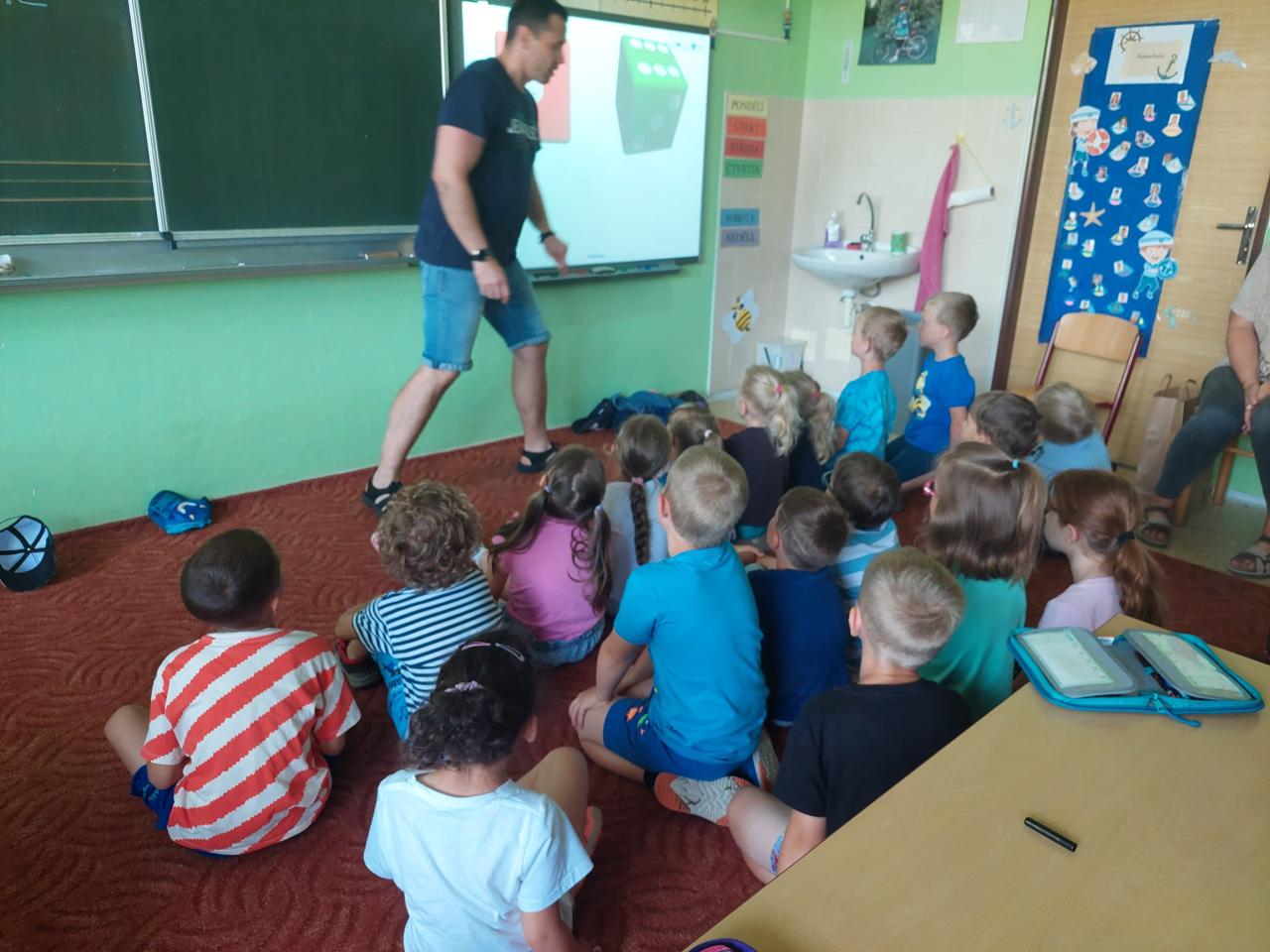 V pátek 21.6. se děti vydaly na návštěvu do 1.třídy základní školy. Nejdřív se ve školní jídelně nasvačily a pak jim jejich starší kamarádi v 1.třídě ukázaly jak to ve škole chodí, co všechno se tam naučily a dokonce si společně zasoutěžily. Na závěr si ještě děti před školou mohly pohladit koně.