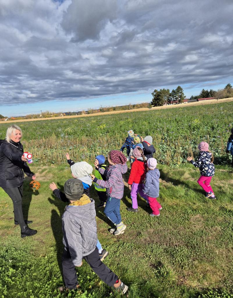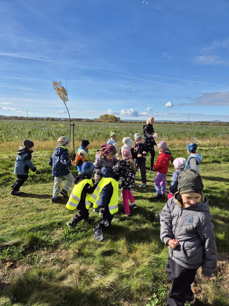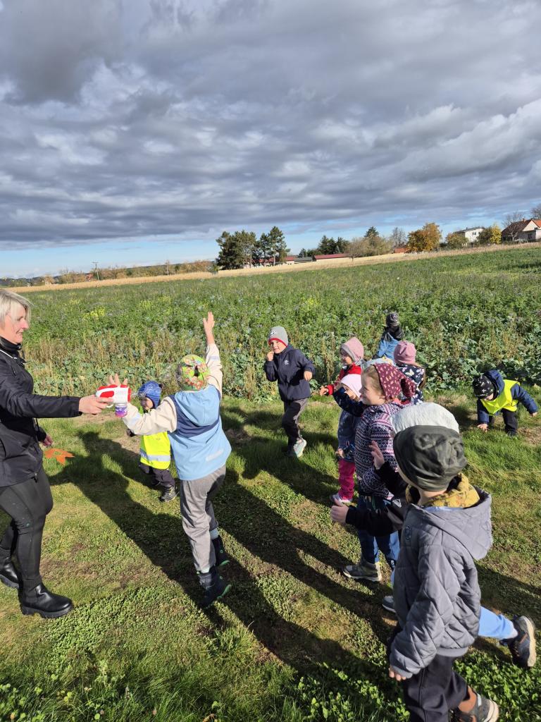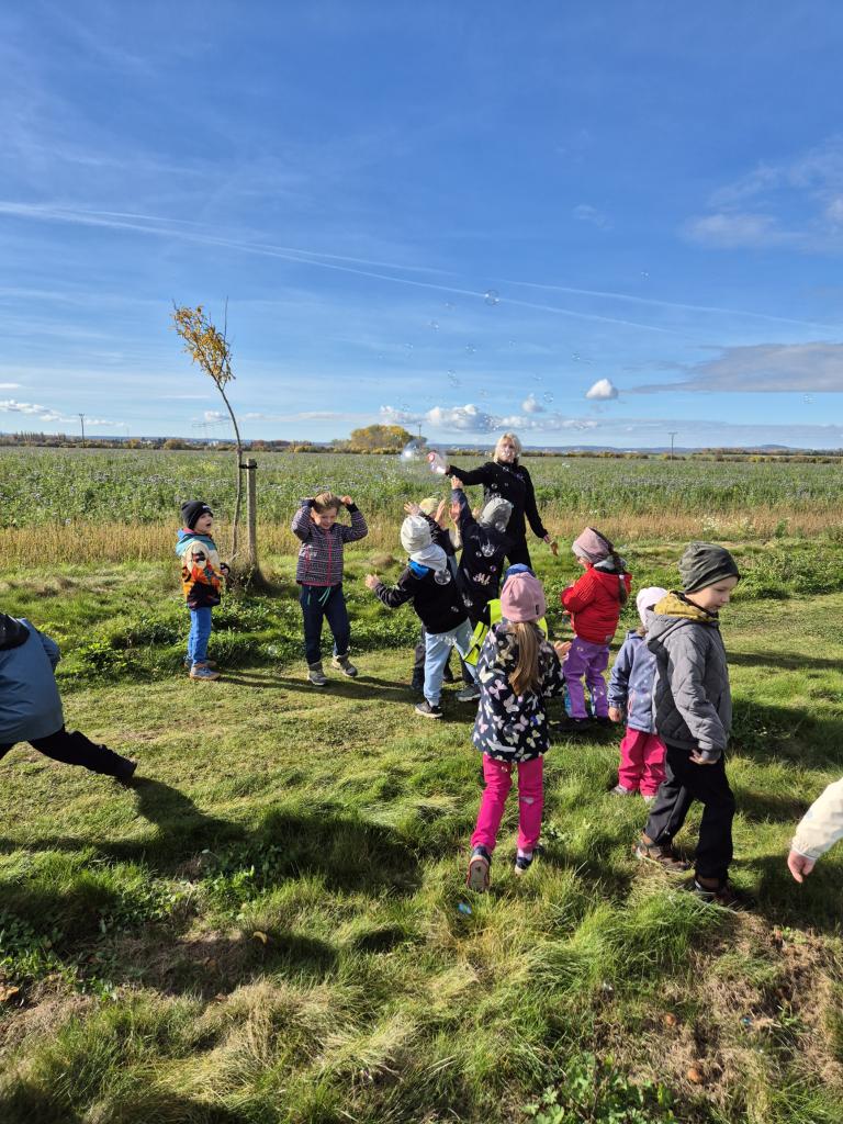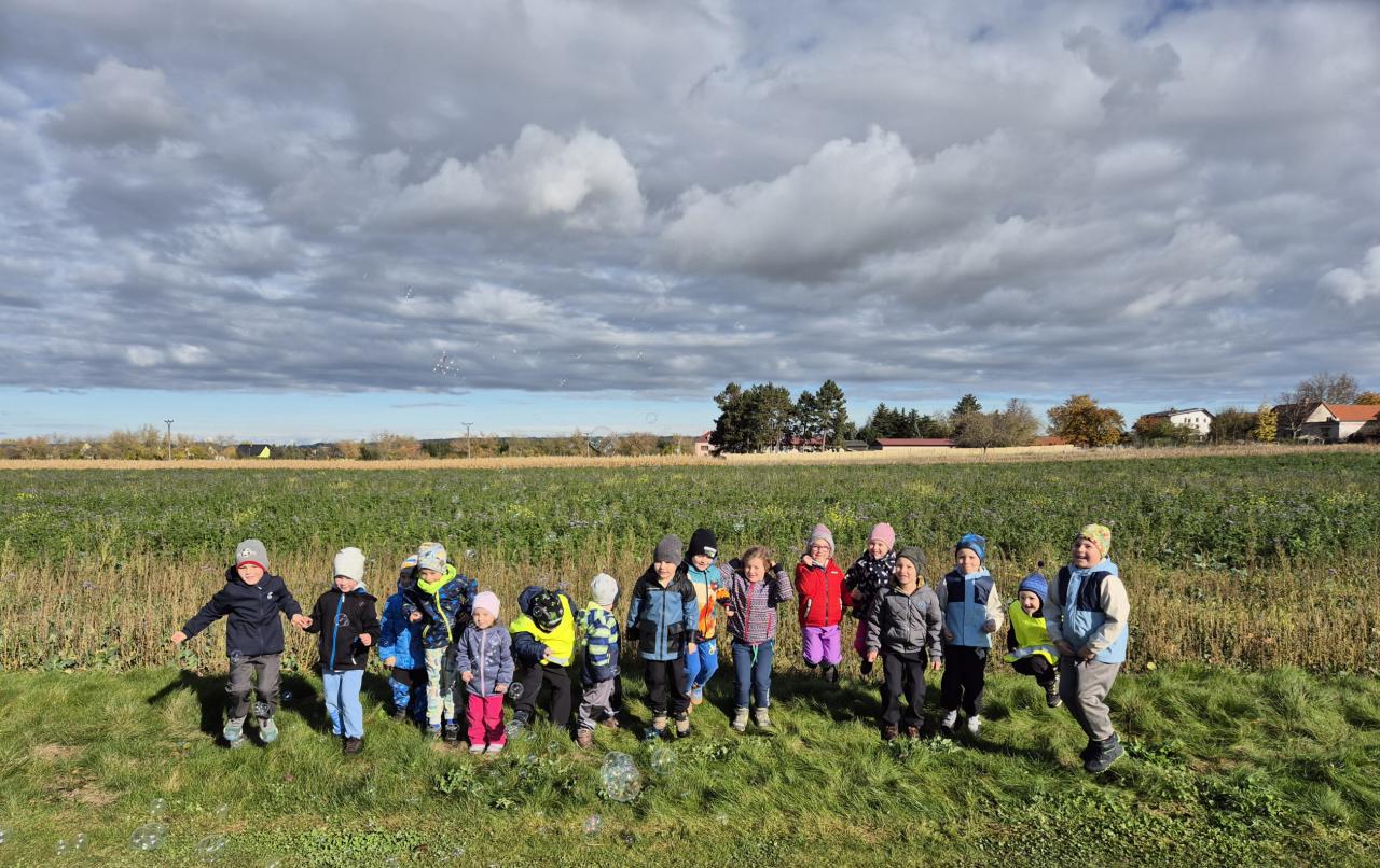 O podzimních prázdninách si děti z obou tříd vyšly na procházku a užít si sluníčko. Dětem udělaly velkou radost bubliny z bublifuku, které s úsměvem chytaly. To bylo skákání...