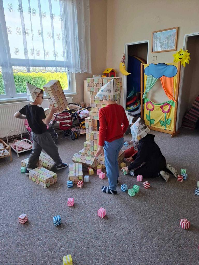 Děti si tento týden užily zábavná dopoledne plná vůní,chutí a zkrášlovacích salonů.Chlapci se zabavili na malém staveništi kde bagrovali a stavěli domy a komíny. Pomocí balonku jsme vyzkoušeli vyrobit statickou elektřinu.