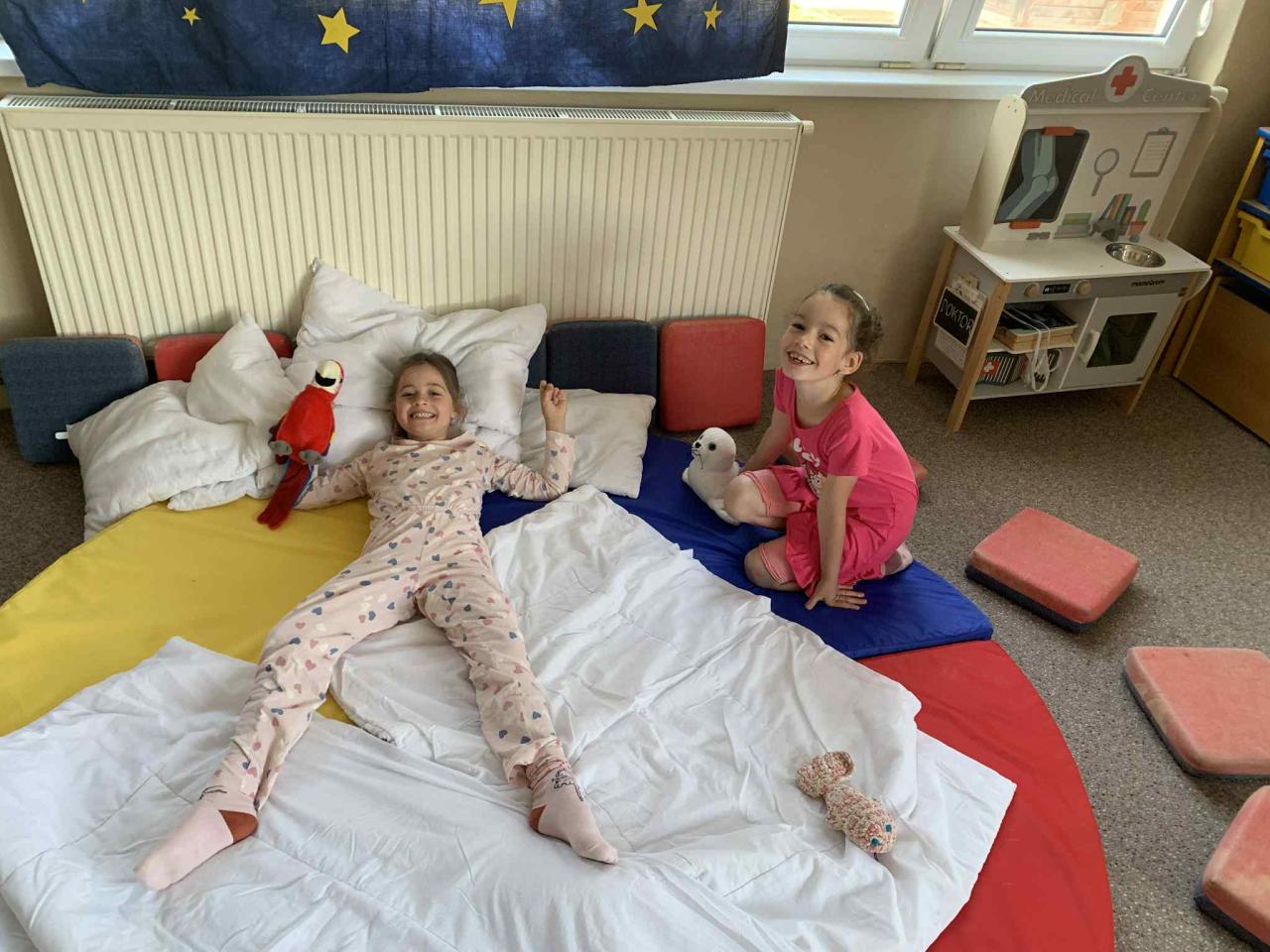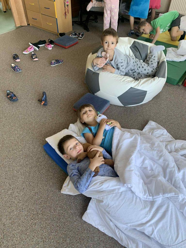 Celý týden jsme cestovali balónem, konečná zastávka byl Pyžamkový ostrov. V pyžámkách s plyšáky jsme si užili zábavné dopoledne.
