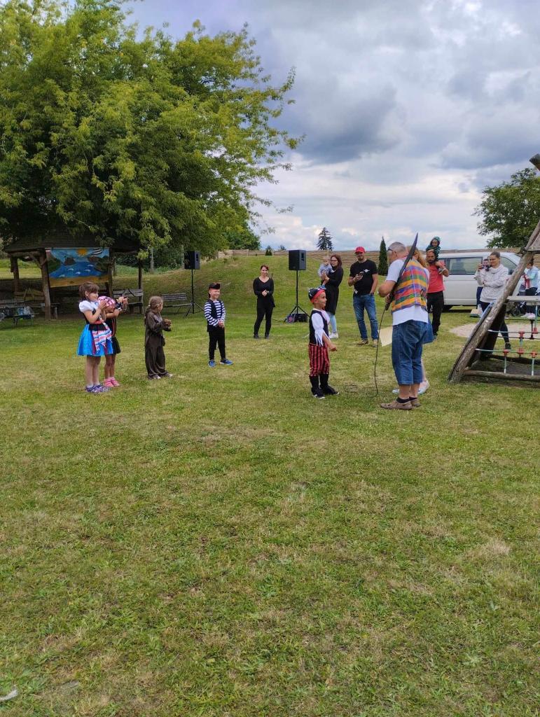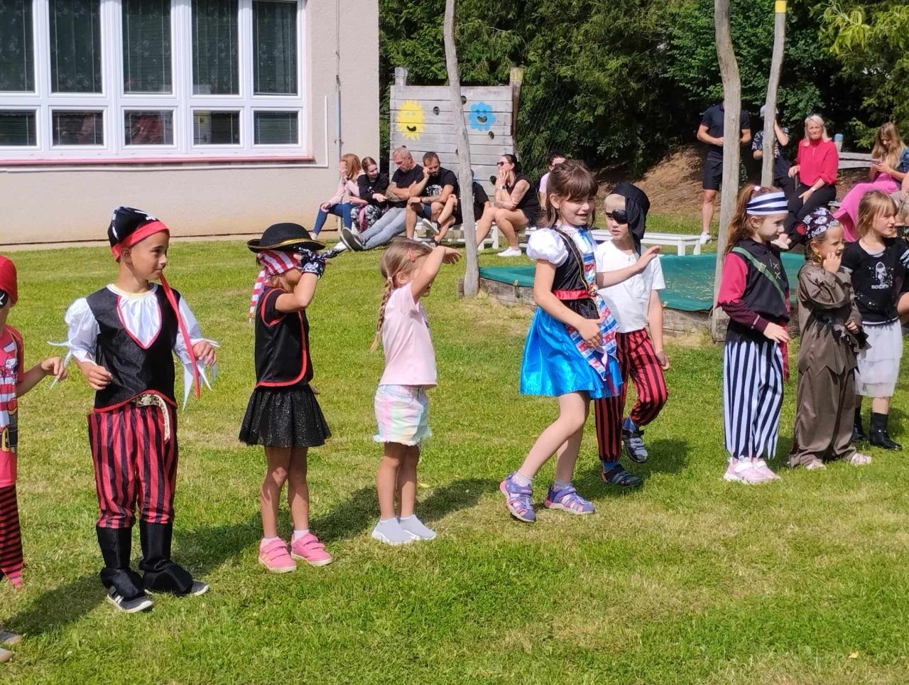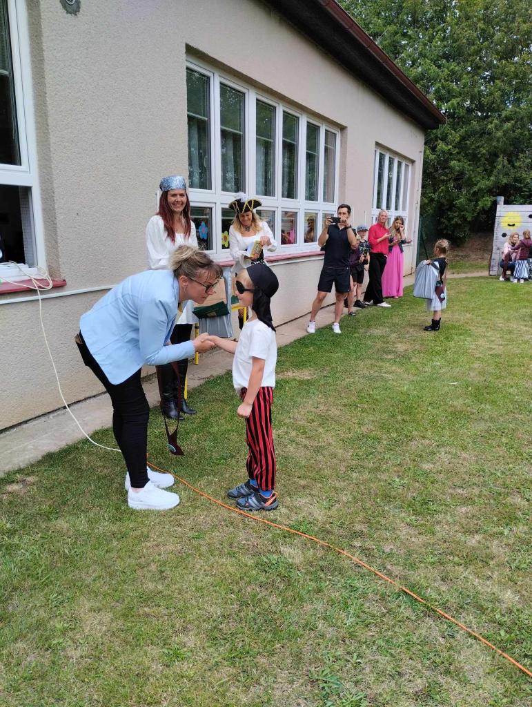 Ve čtvrtek 13.6. proběhlo na zahradě MŠ tradiční "Rozloučení s předškoláky". Děti shlédly zábavný program, předvedly rodičům nazkoušená vystoupení a poté proběhlo pasování na školáky. Počasí si s námi trošku hrálo, ale nakonec jsme si společné odpoledne všichni moc užili.