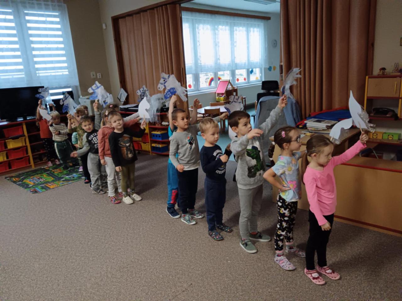 Děti ze třídy Hvězdiček si zahrály na příchod sv. Martina a vyrobily si koníky.