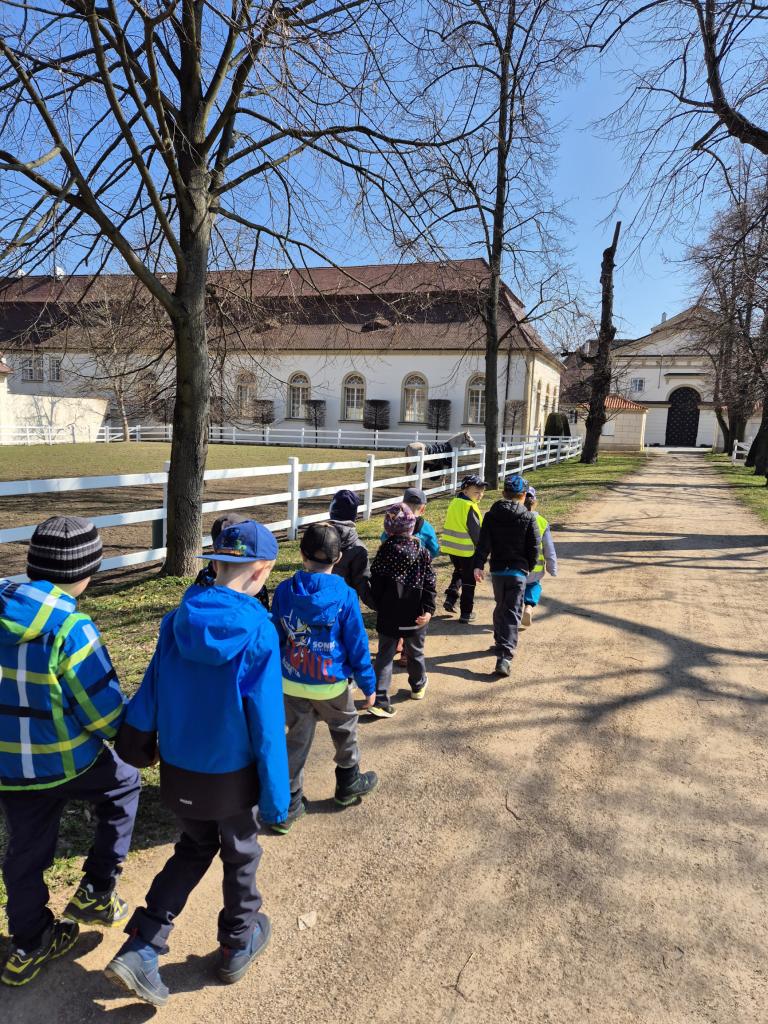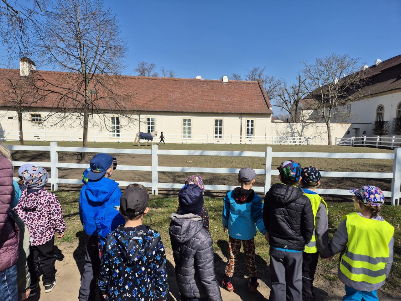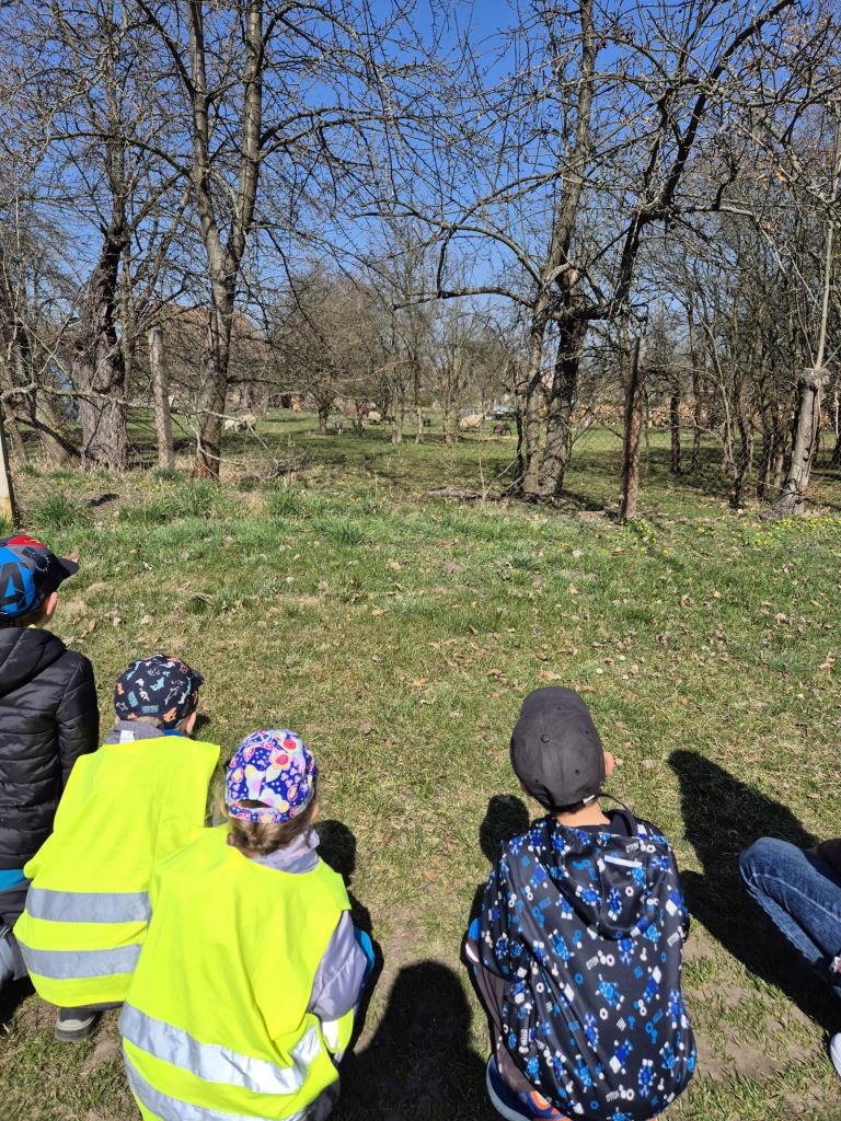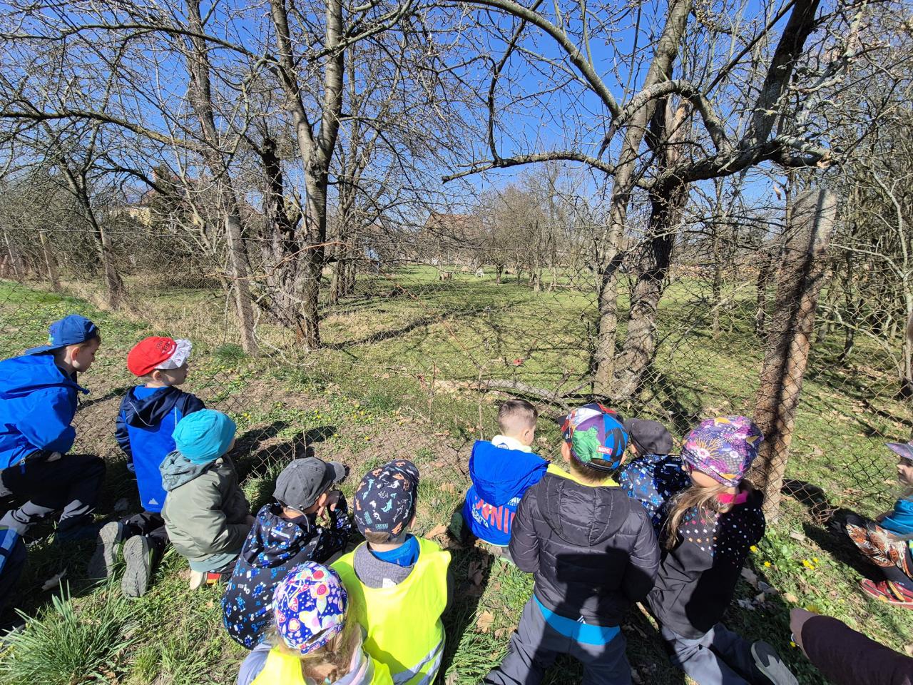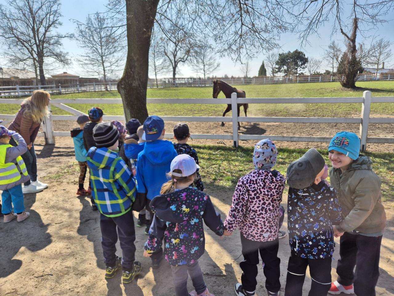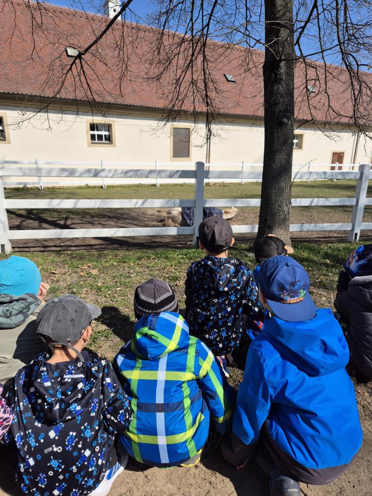 Při vycházce jsme pozorovali chování koní a oveček s jehňátky.