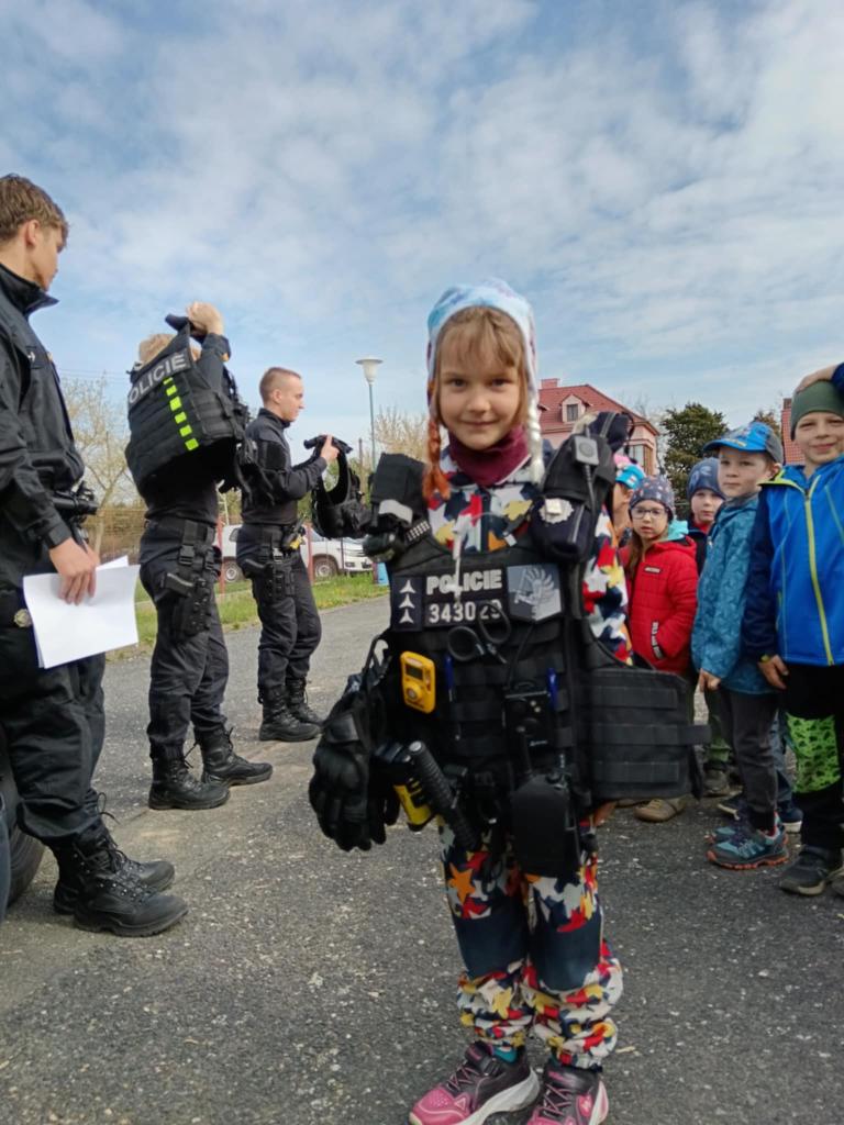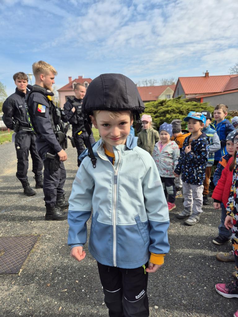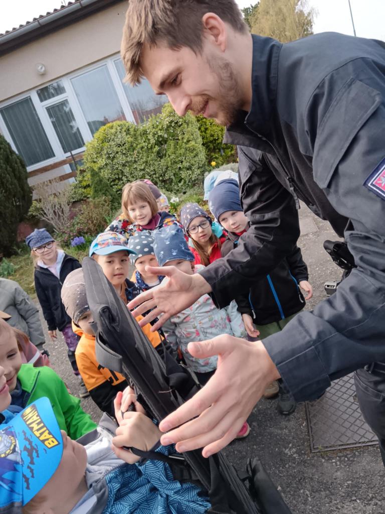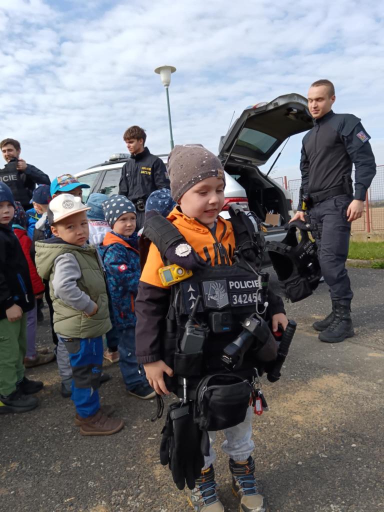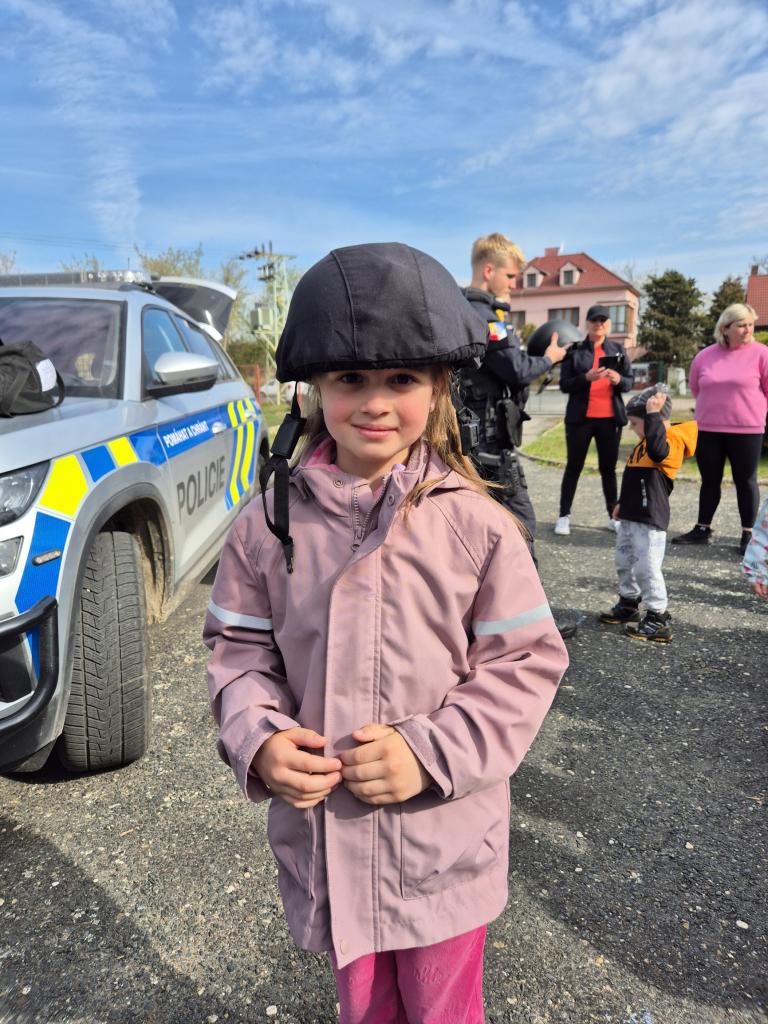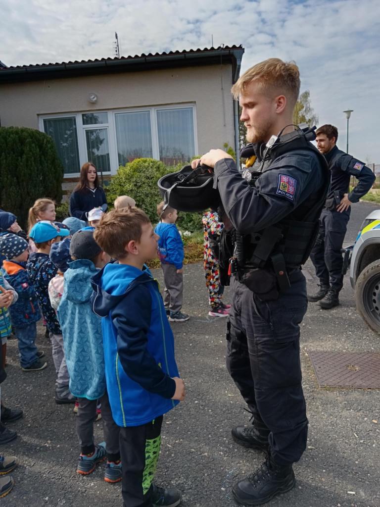 Dne 14.4.2025 přijeli do naší školky policisté z oddělení prvosledové hlídky z Kutné Hory a seznámili děti se svou prací, ukázali pomůcky, které používají při své práci, některé si děti mohly i vyzkoušet. Nakonec nesměla chybět prohlídka policejního auta a zkouška majaků.