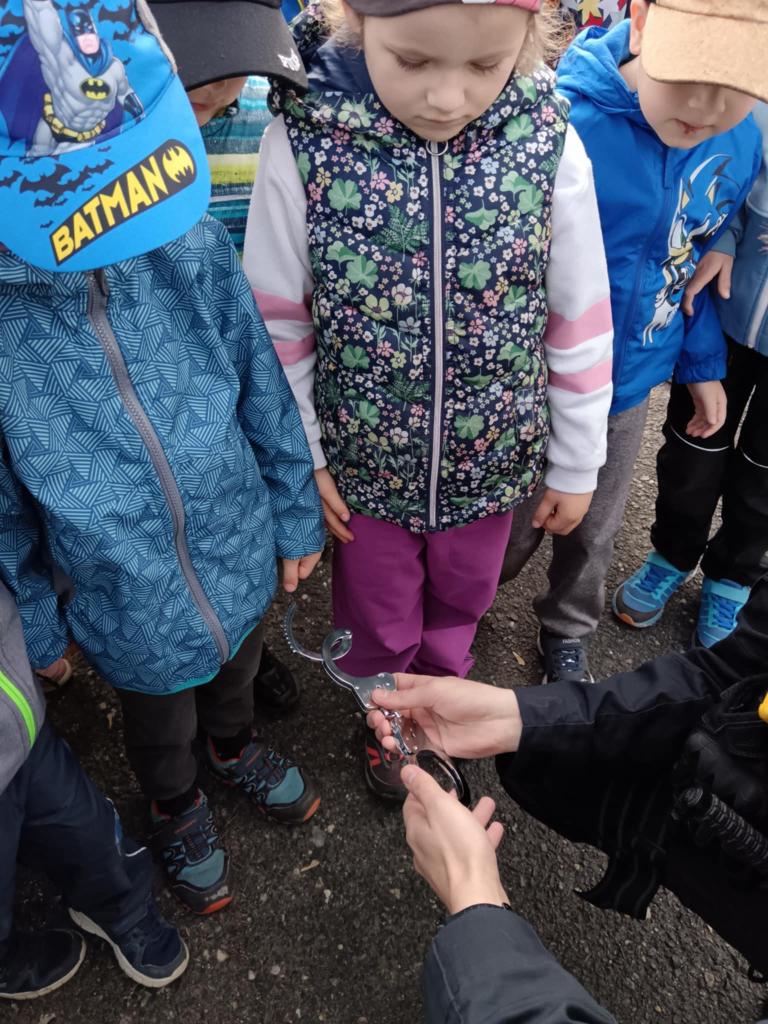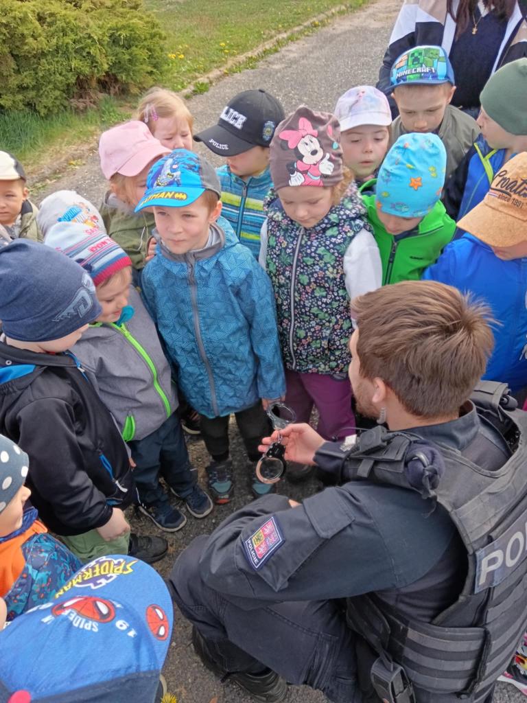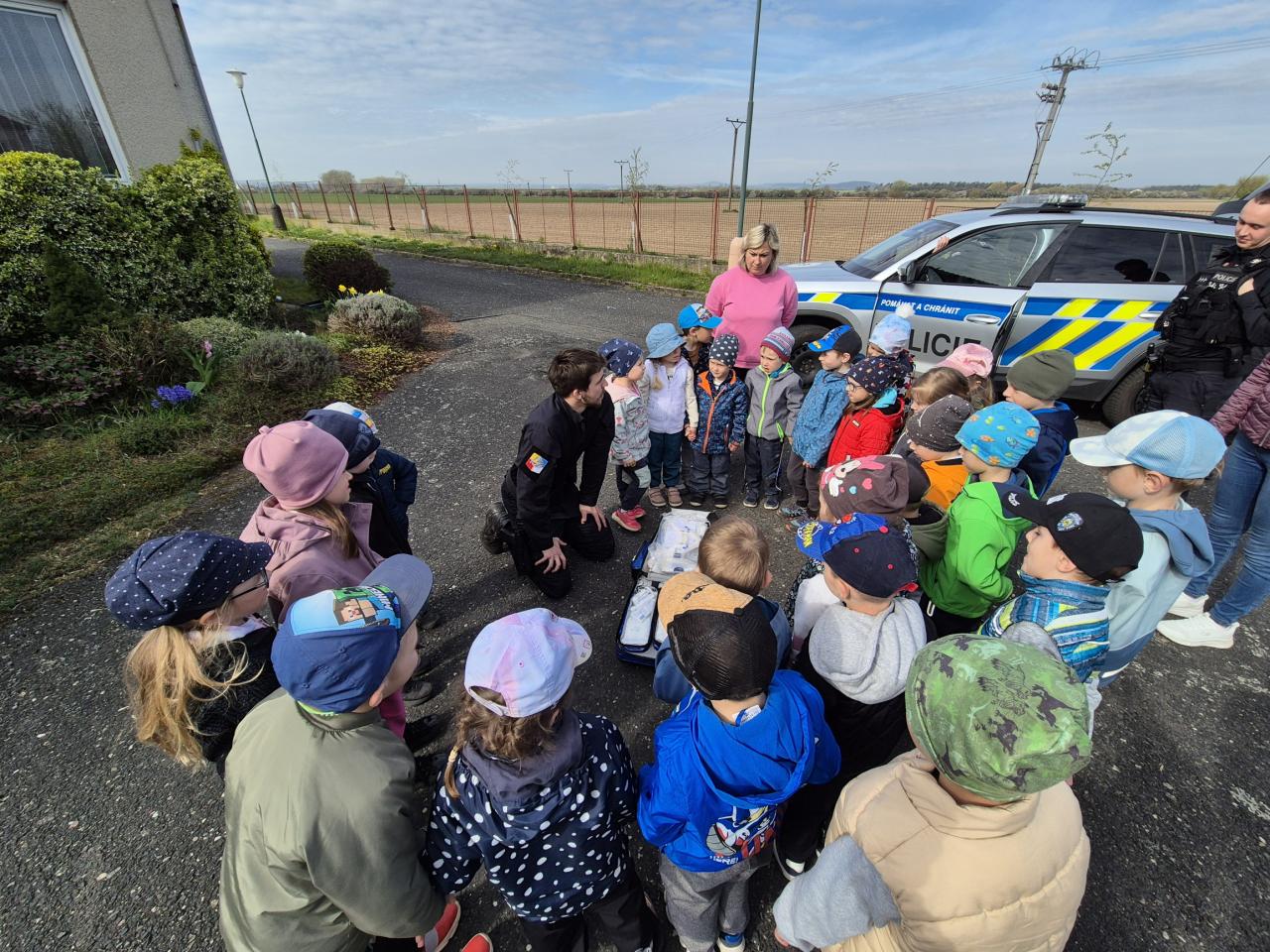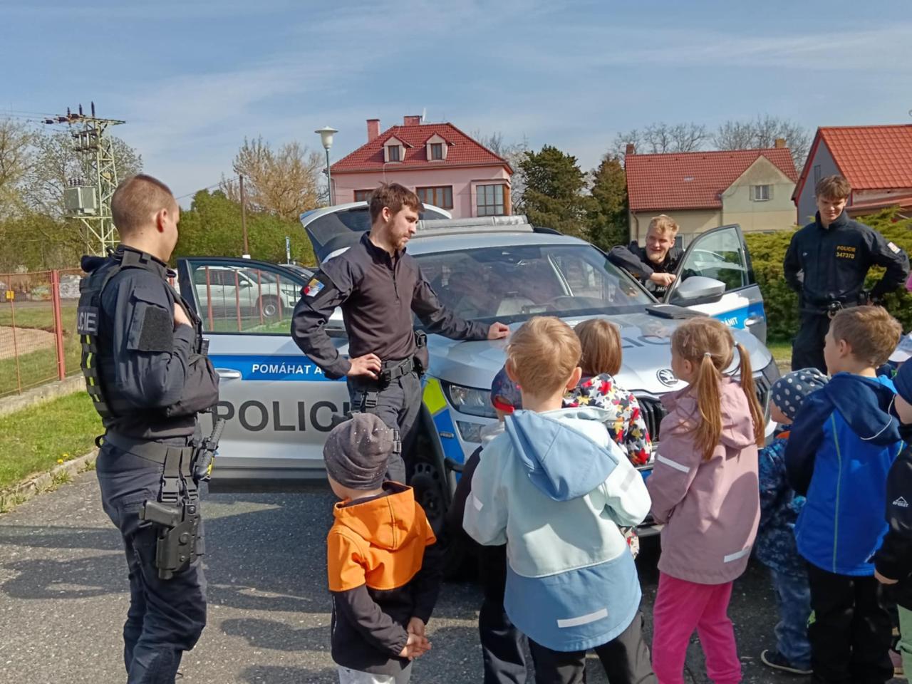 Dne 14.4.2025 přijeli do naší školky policisté z oddělení prvosledové hlídky z Kutné Hory a seznámili děti se svou prací, ukázali pomůcky, které používají při své práci, některé si děti mohly i vyzkoušet. Nakonec nesměla chybět prohlídka policejního auta a zkouška majaků.