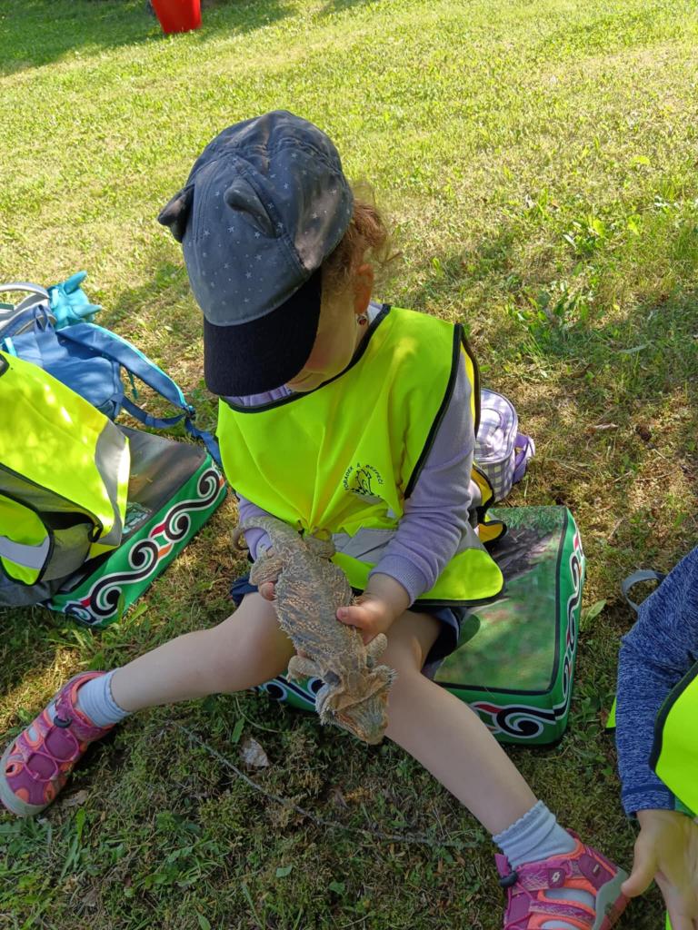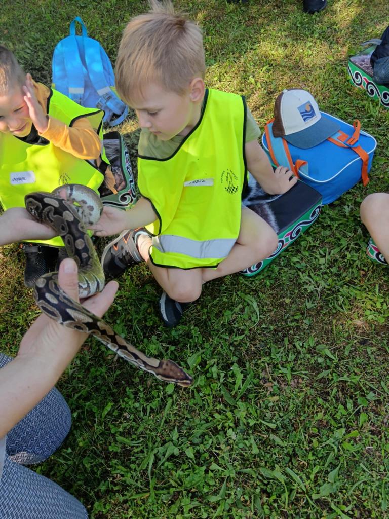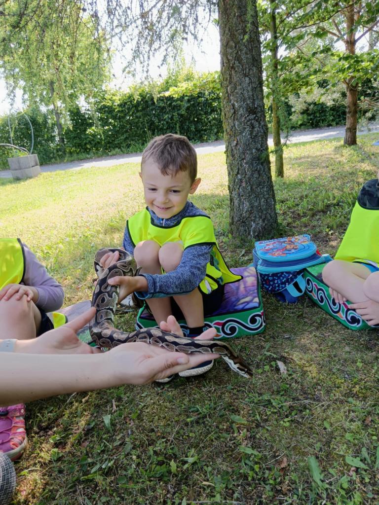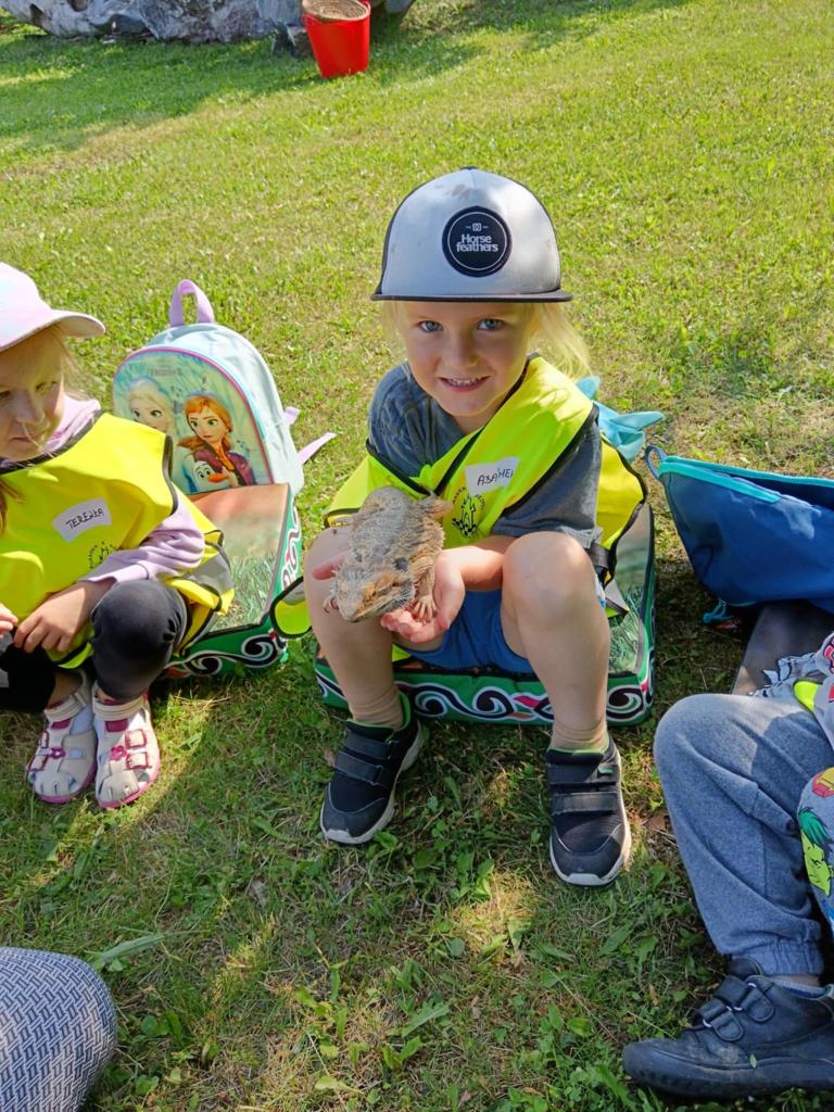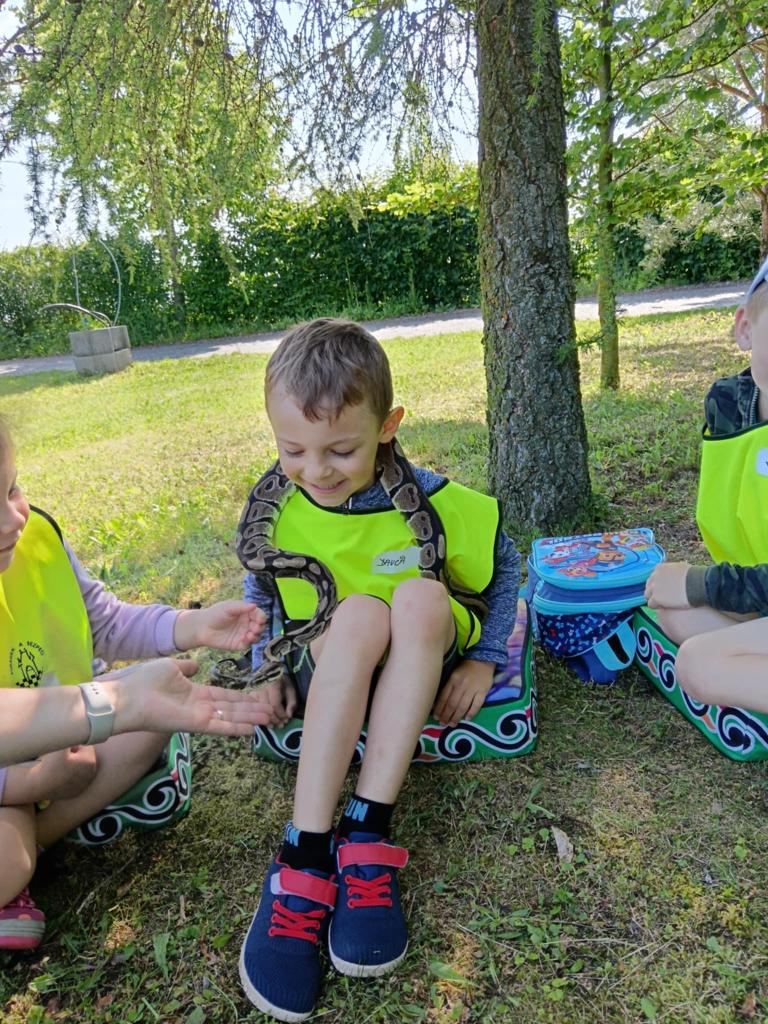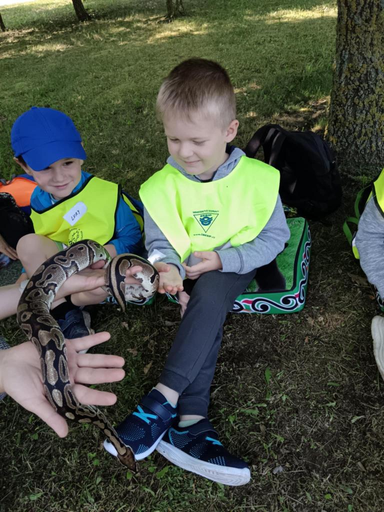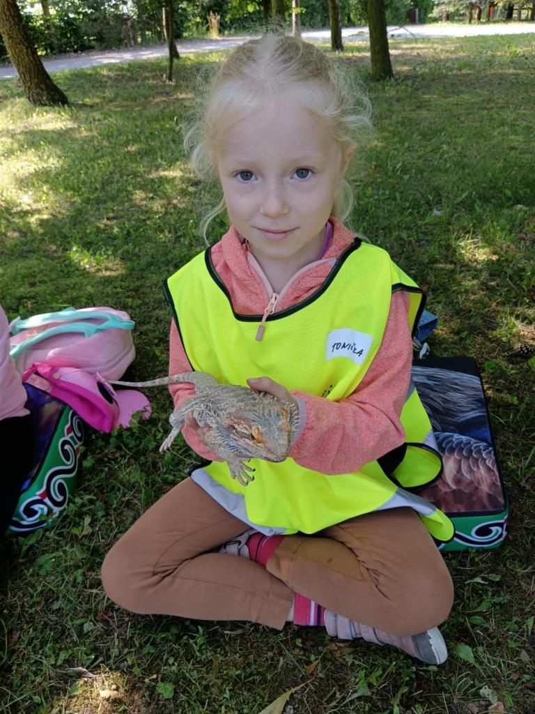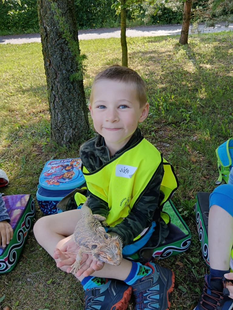 V úterý 17.6. jsme se vydali na výlet, který se nám moc vydařil. Připravený program se dětem moc líbil. Seznámili se s tím, jak některá zvířata žijí, co jedí. Mohly si pohladit hada Olíka, agamu a ježka. Na závěr si vyrobily hmyzí domečky.