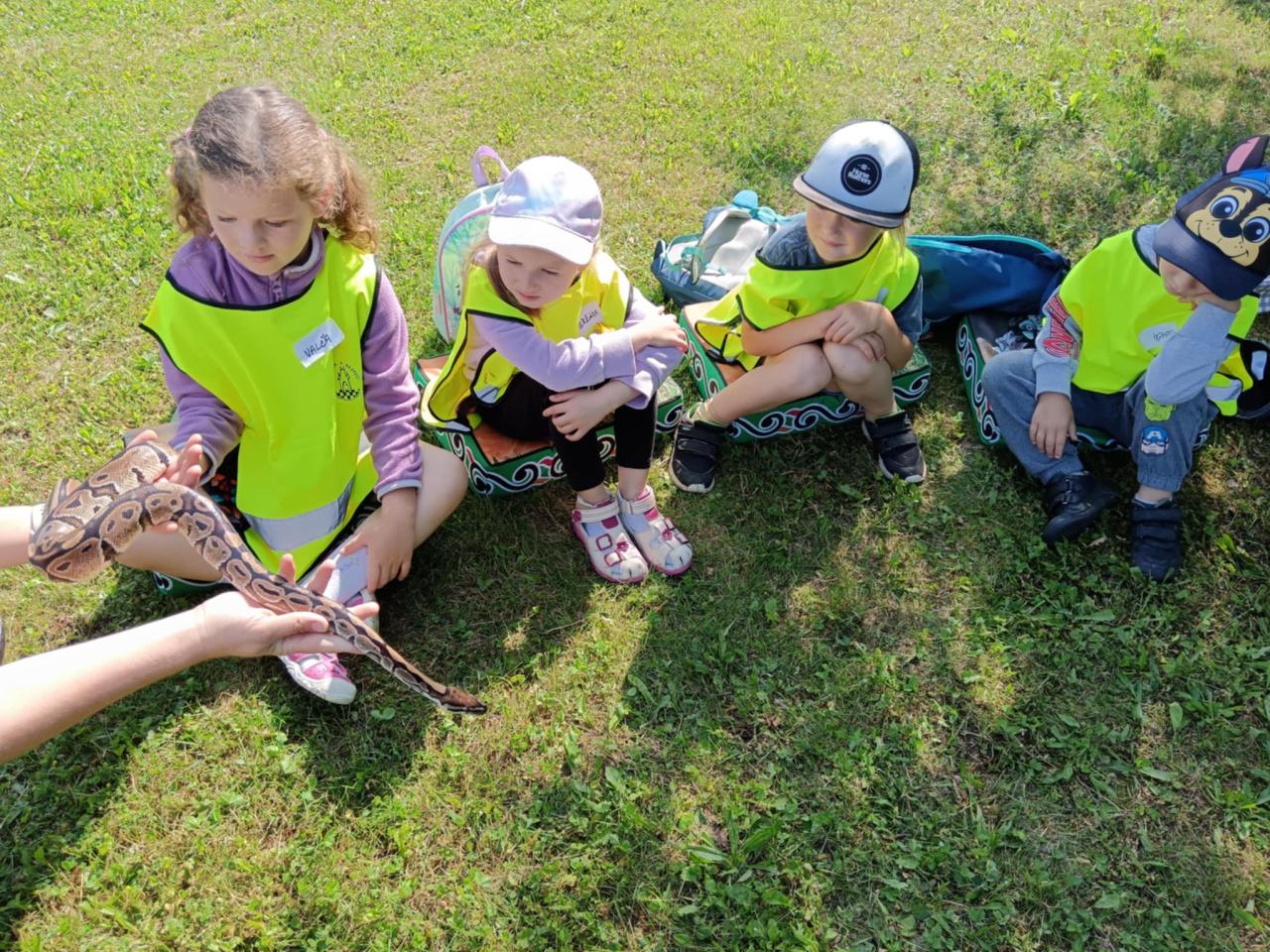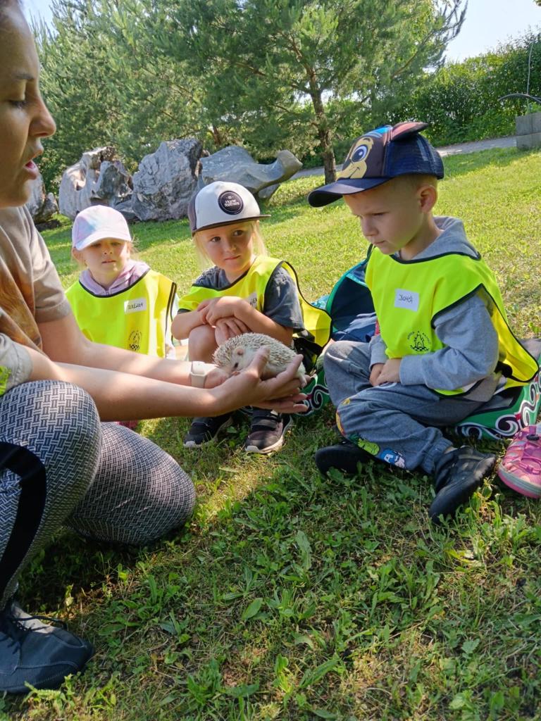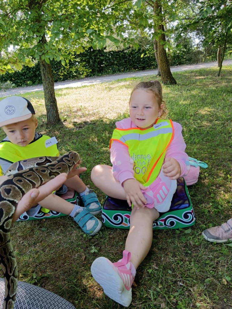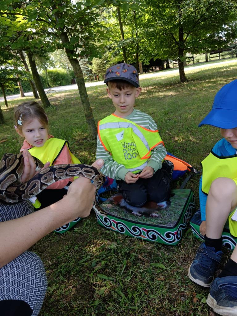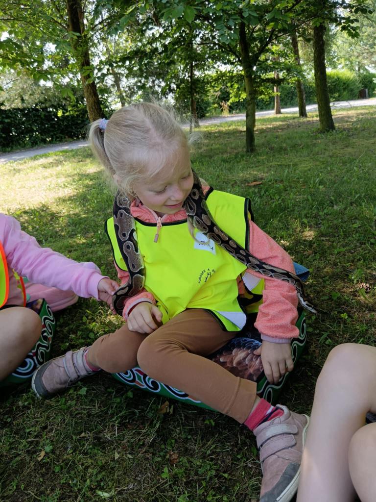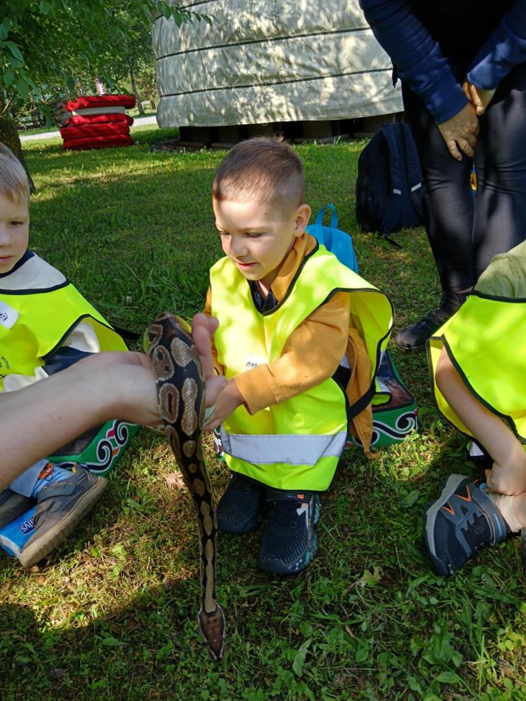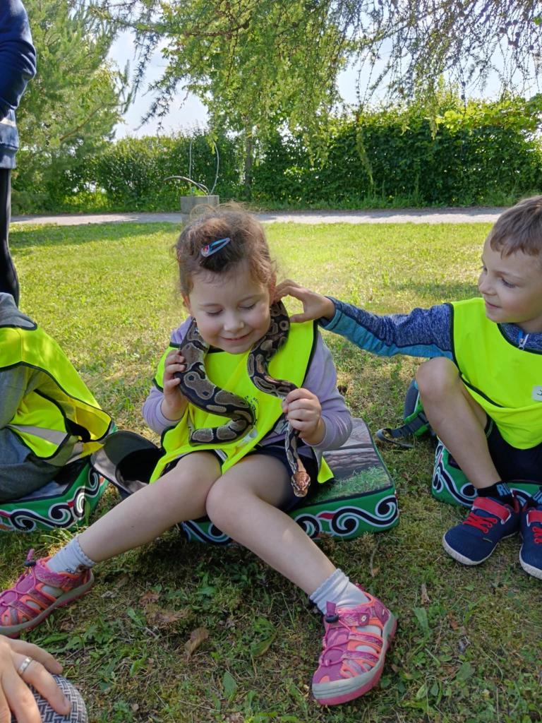 V úterý 17.6. jsme se vydali na výlet, který se nám moc vydařil. Připravený program se dětem moc líbil. Seznámili se s tím, jak některá zvířata žijí, co jedí. Mohly si pohladit hada Olíka, agamu a ježka. Na závěr si vyrobily hmyzí domečky.