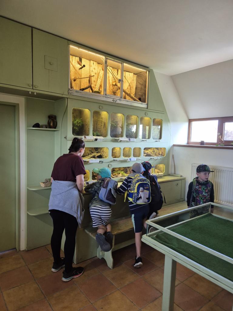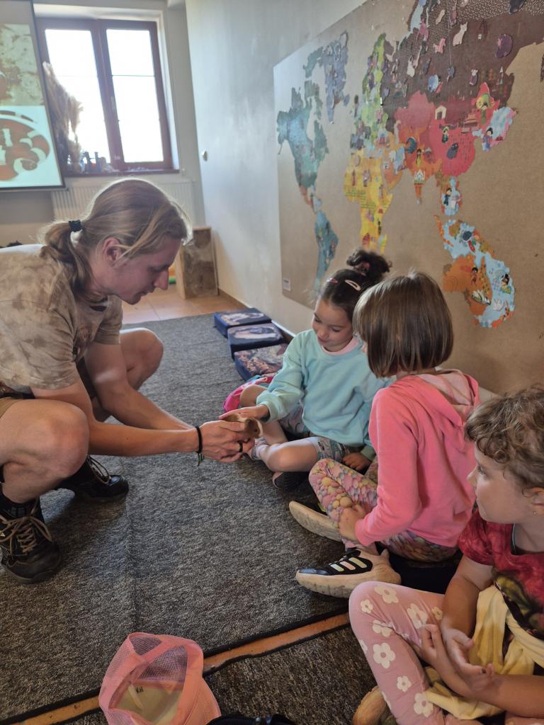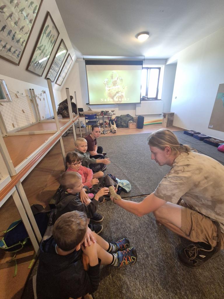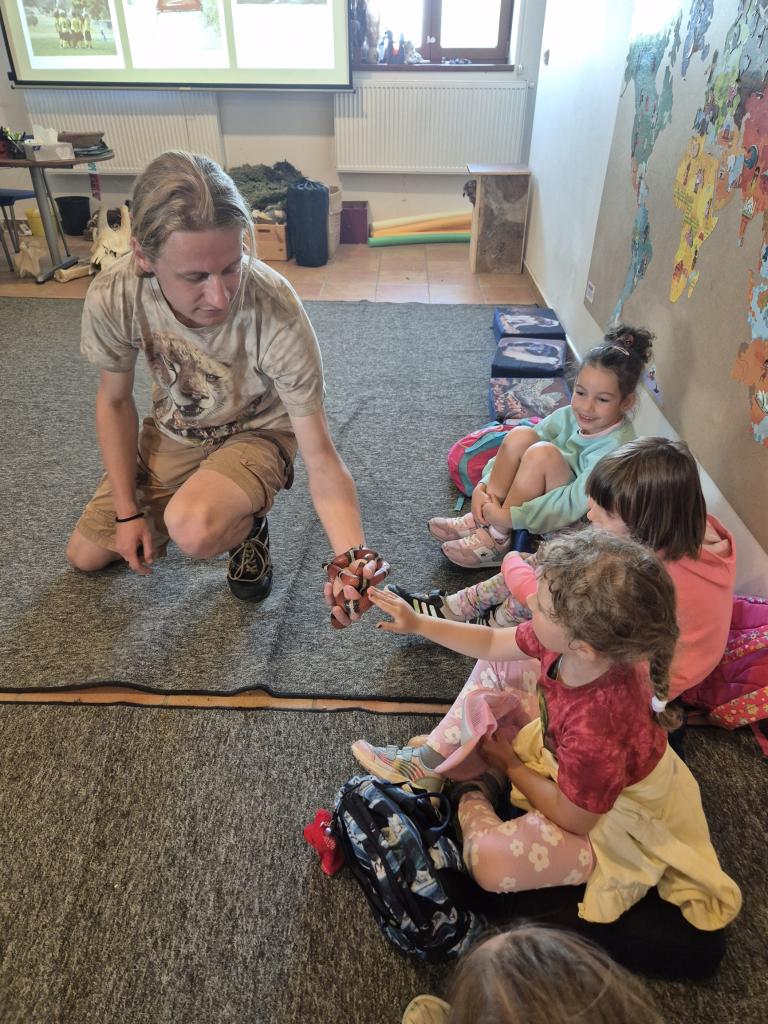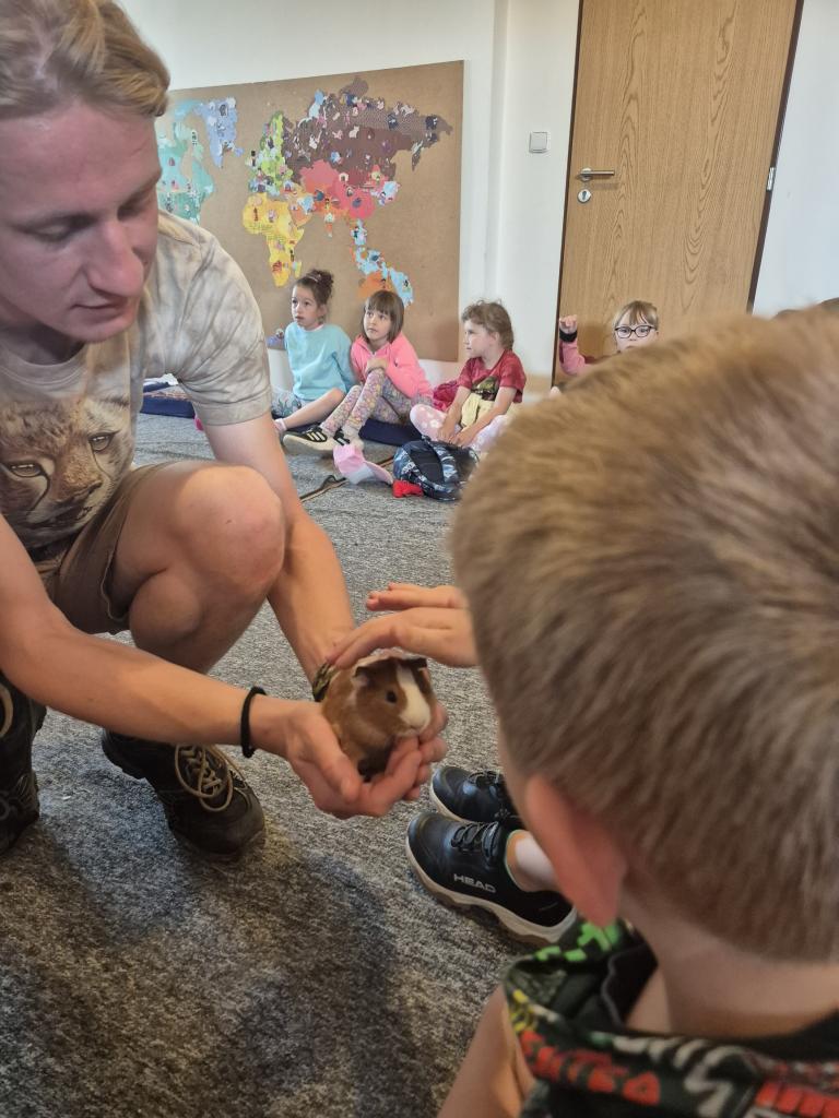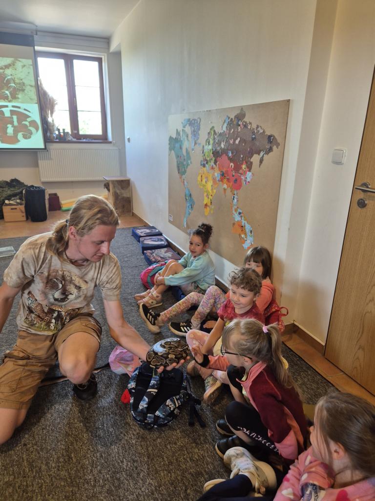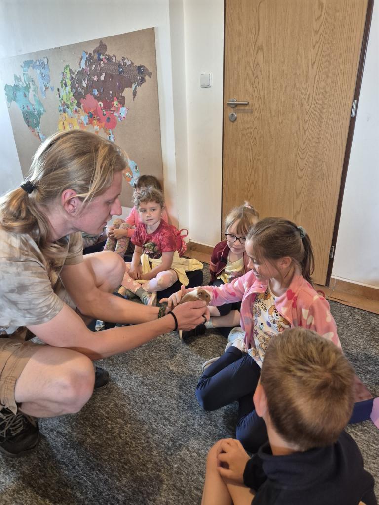 V úterý 17.6. jsme se vydali na dlouho očekávaný výlet, který se nám všem moc líbil. Měli jsme připravený program o maskování živočichů v přírodě. Seznámili jsme se s tím, jak a proč se zvířata v přírodě maskují a dokonce jsme si mohli pohladit korálovku, krajtu, gekona a morčátko.