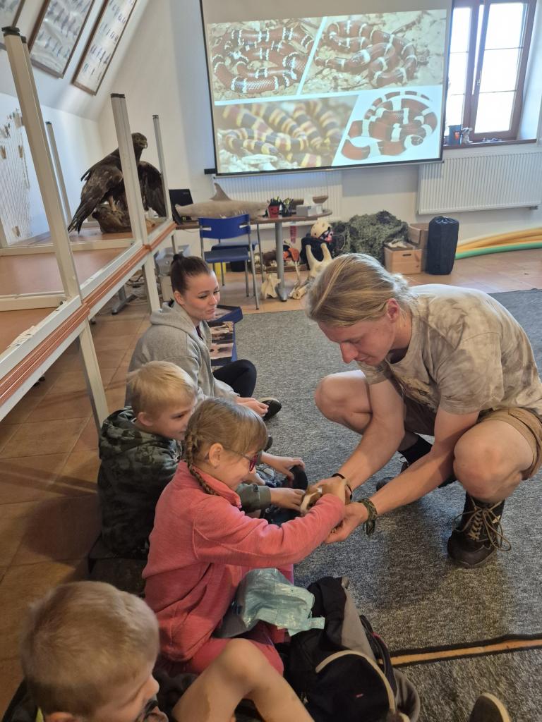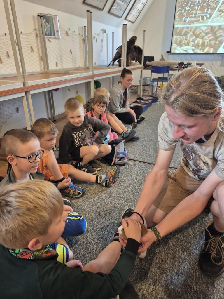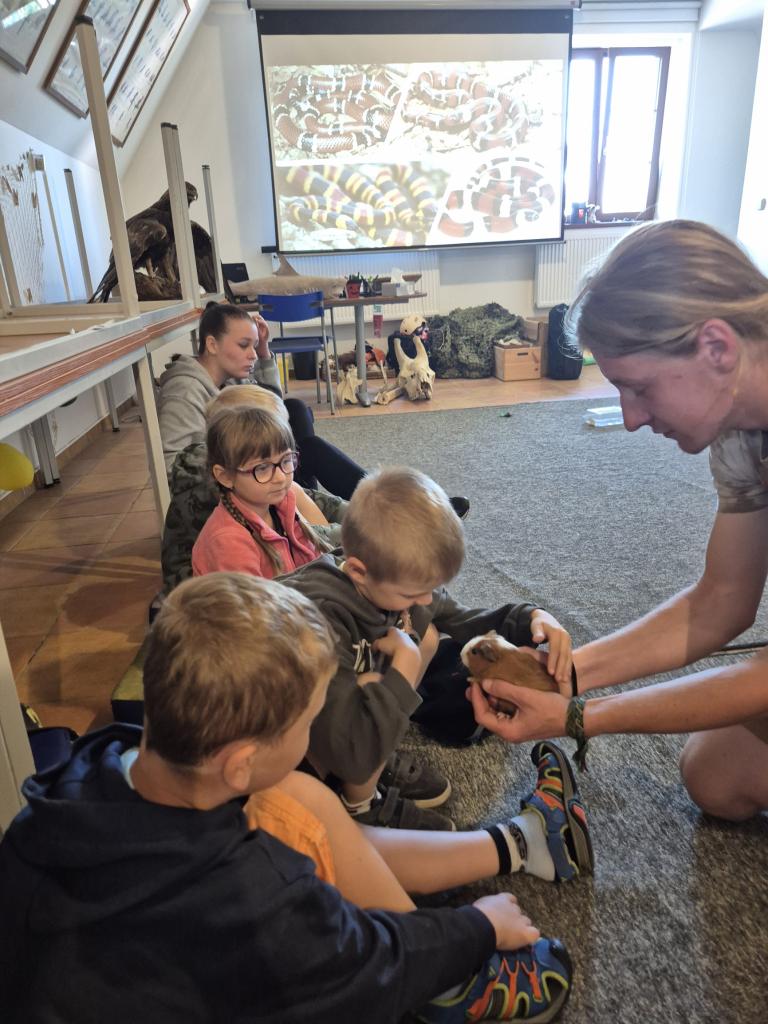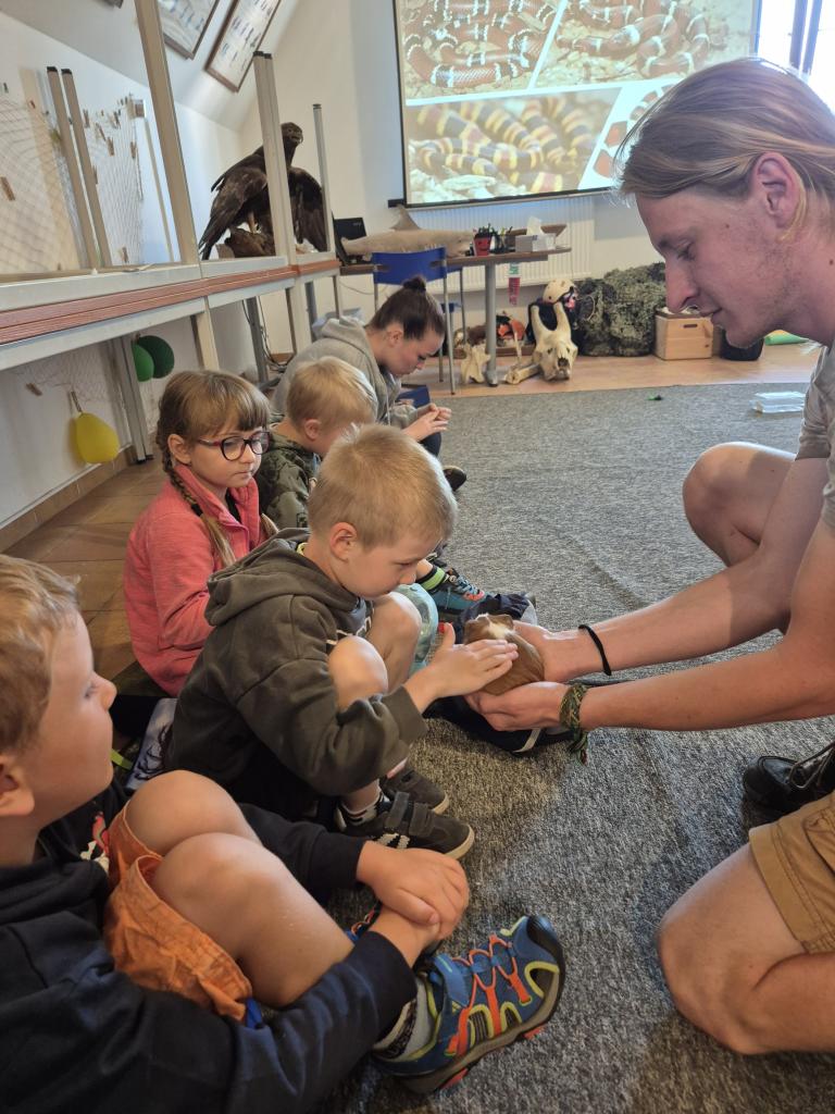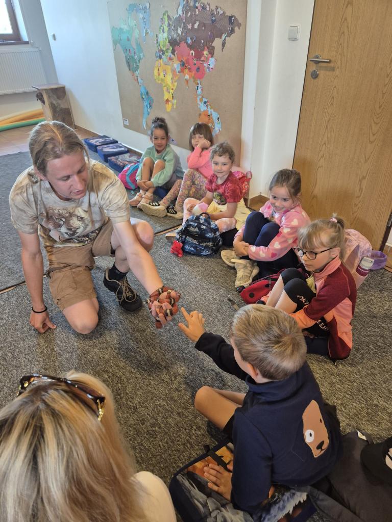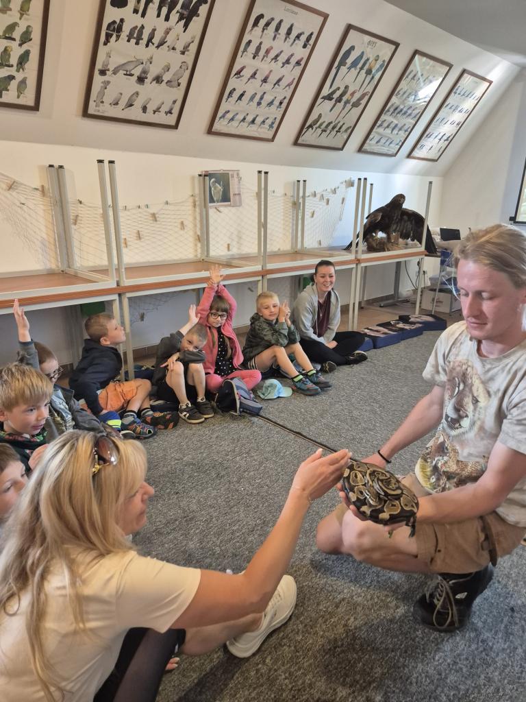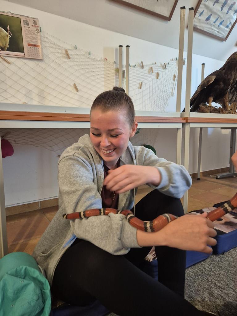 V úterý 17.6. jsme se vydali na dlouho očekávaný výlet, který se nám všem moc líbil. Měli jsme připravený program o maskování živočichů v přírodě. Seznámili jsme se s tím, jak a proč se zvířata v přírodě maskují a dokonce jsme si mohli pohladit korálovku, krajtu, gekona a morčátko.