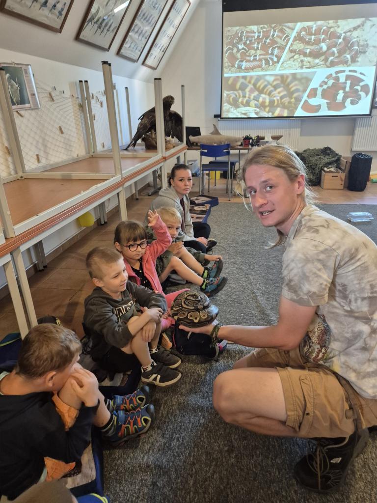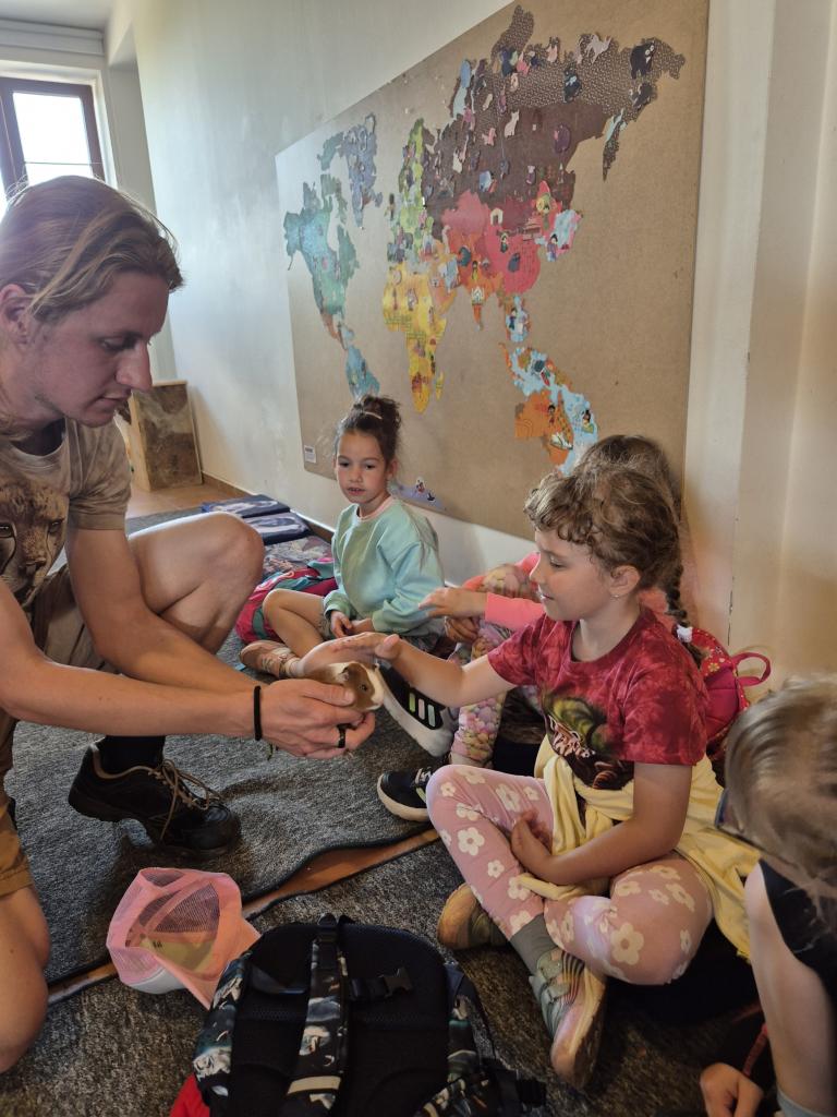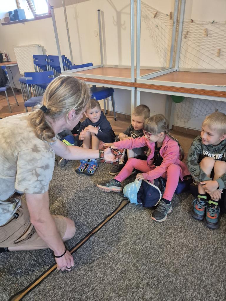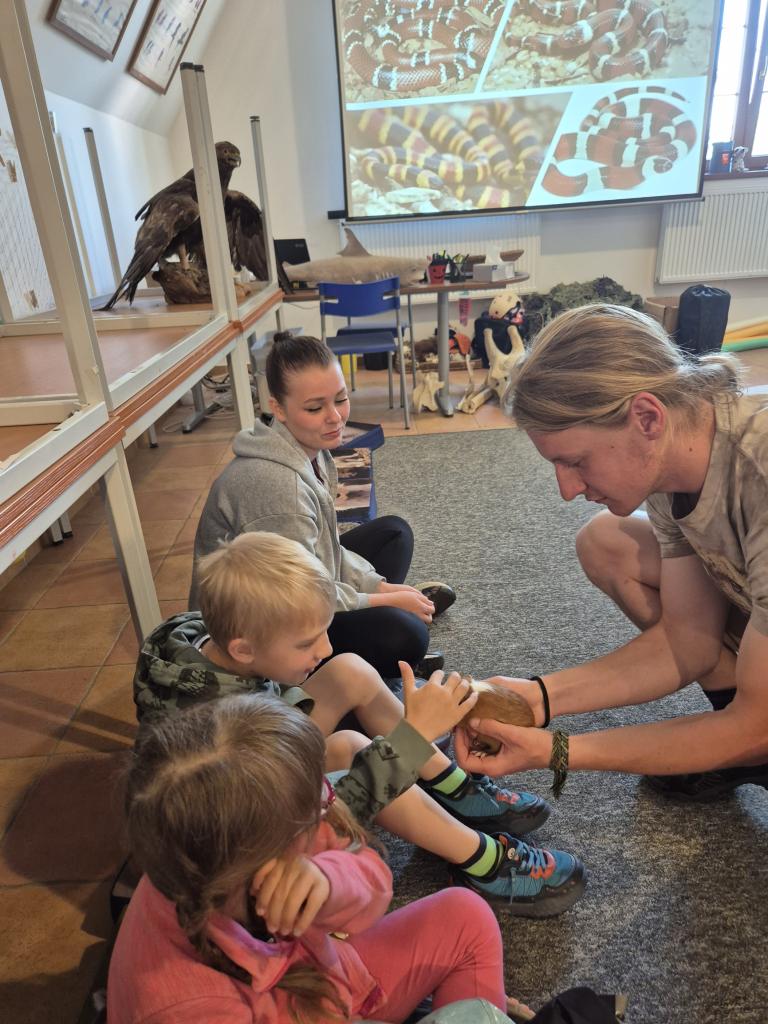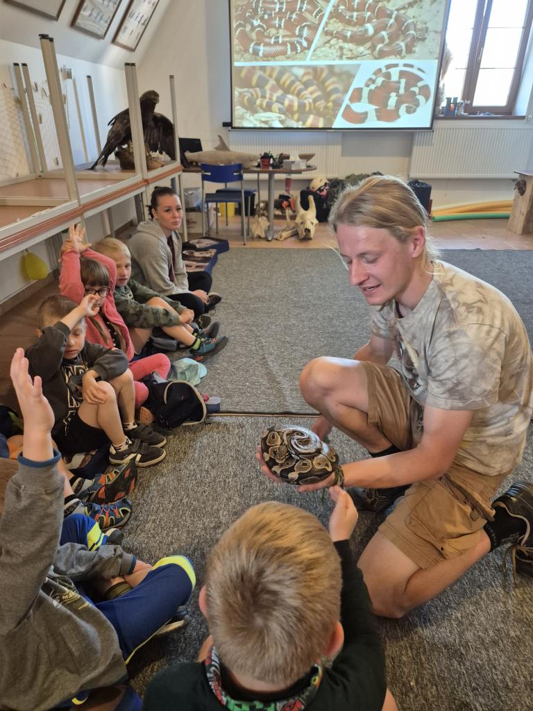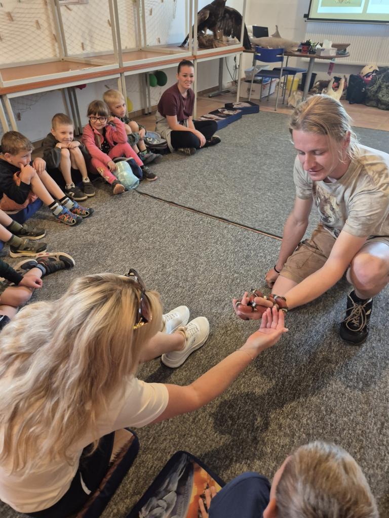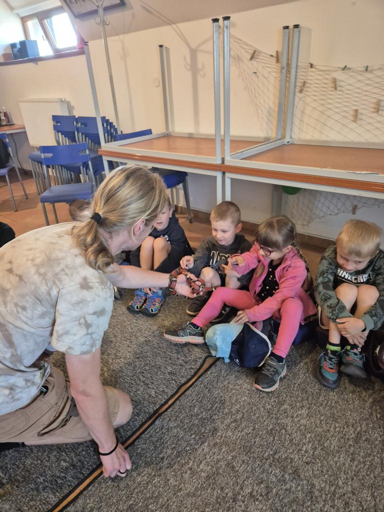 V úterý 17.6. jsme se vydali na dlouho očekávaný výlet, který se nám všem moc líbil. Měli jsme připravený program o maskování živočichů v přírodě. Seznámili jsme se s tím, jak a proč se zvířata v přírodě maskují a dokonce jsme si mohli pohladit korálovku, krajtu, gekona a morčátko.