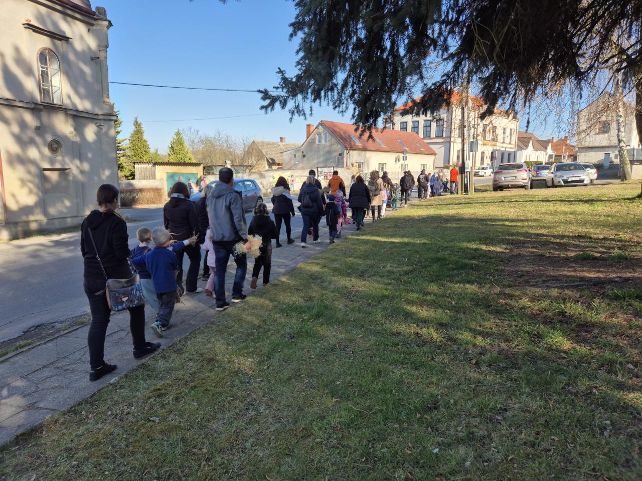 Ve čtvrtek 20.3. se uskutečnila odpolední společná vycházka rodičů s dětmi k řece Doubravě, vynesení Morany a přivolání jara.