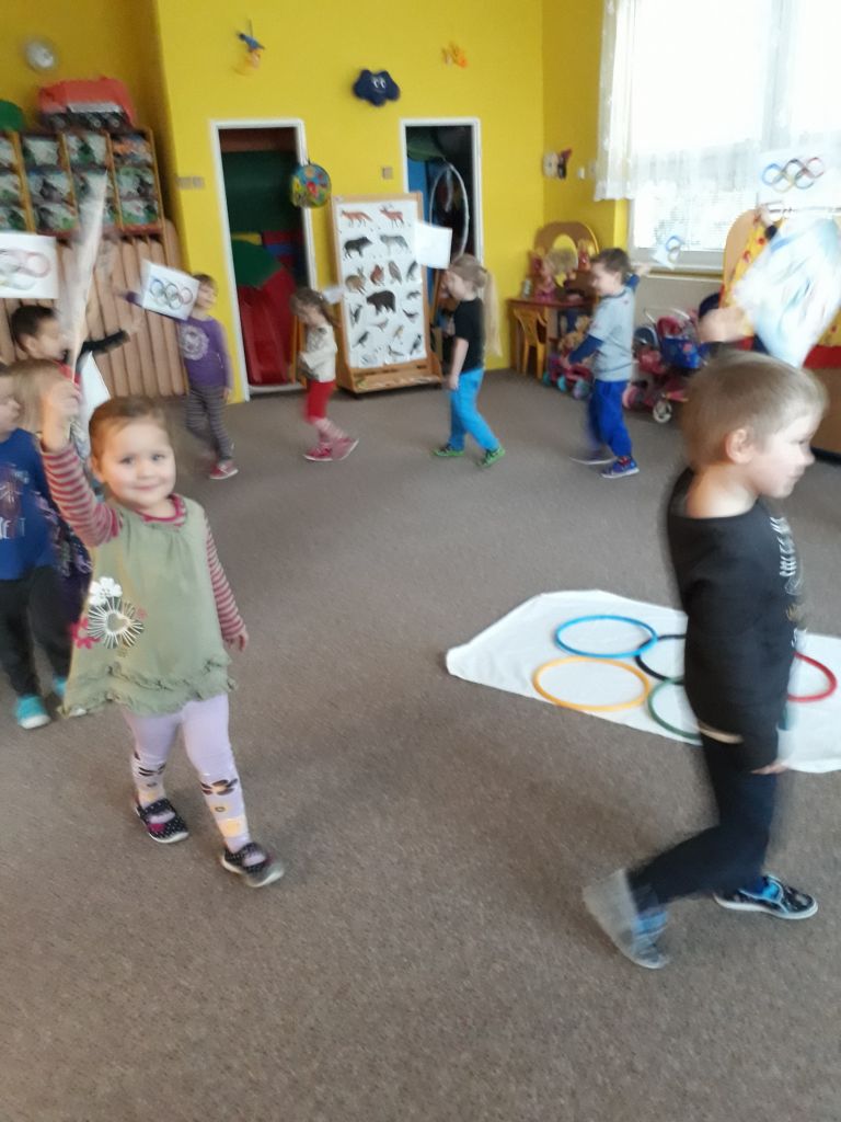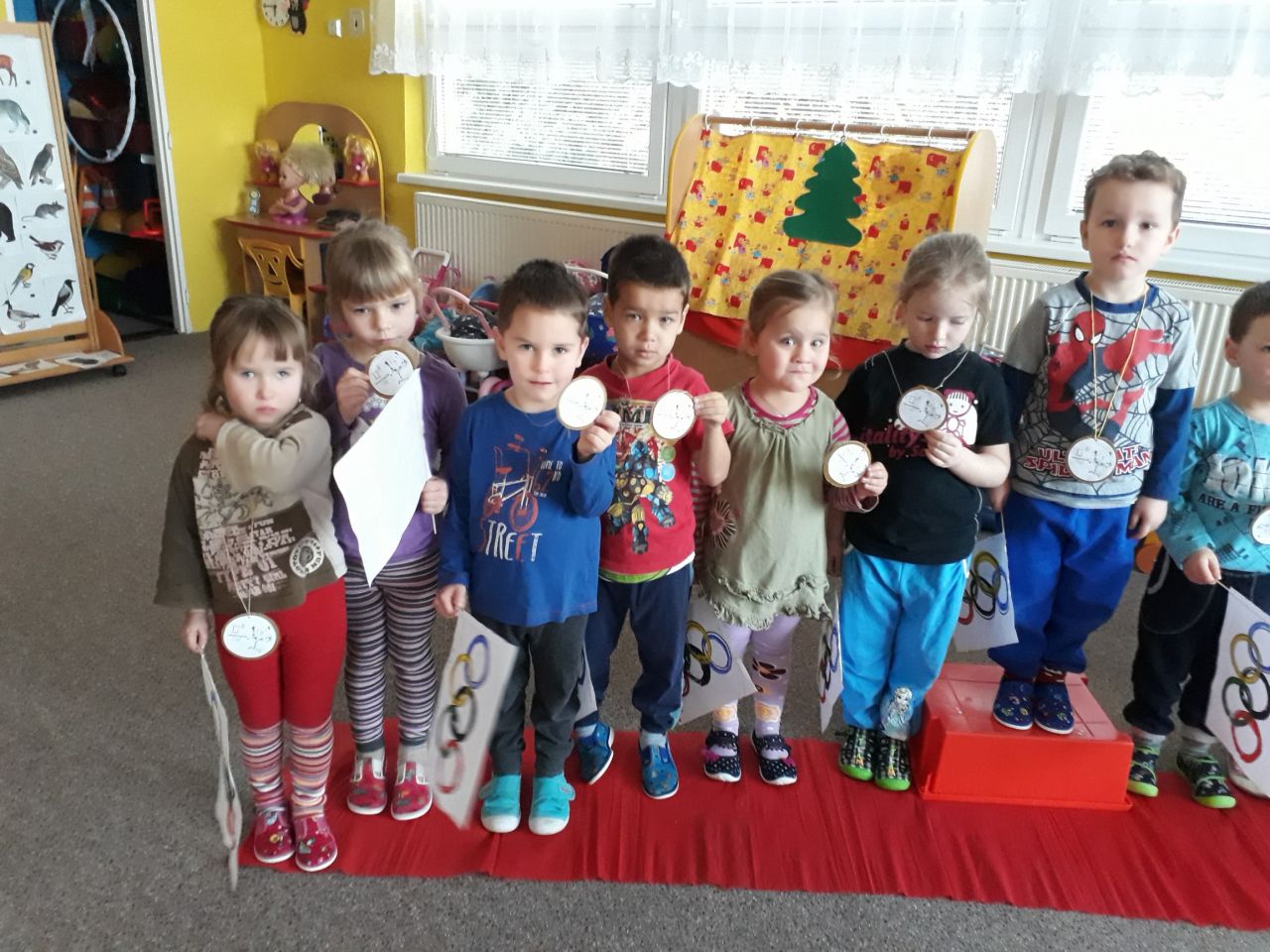 I my ve školce jsme si povídali o probíhajících Zimních olympijských hrách a tak jsme se rozhodli uspořádat si vlastní - Školkové olympijské hry. Pořádně jsme si je užili.
