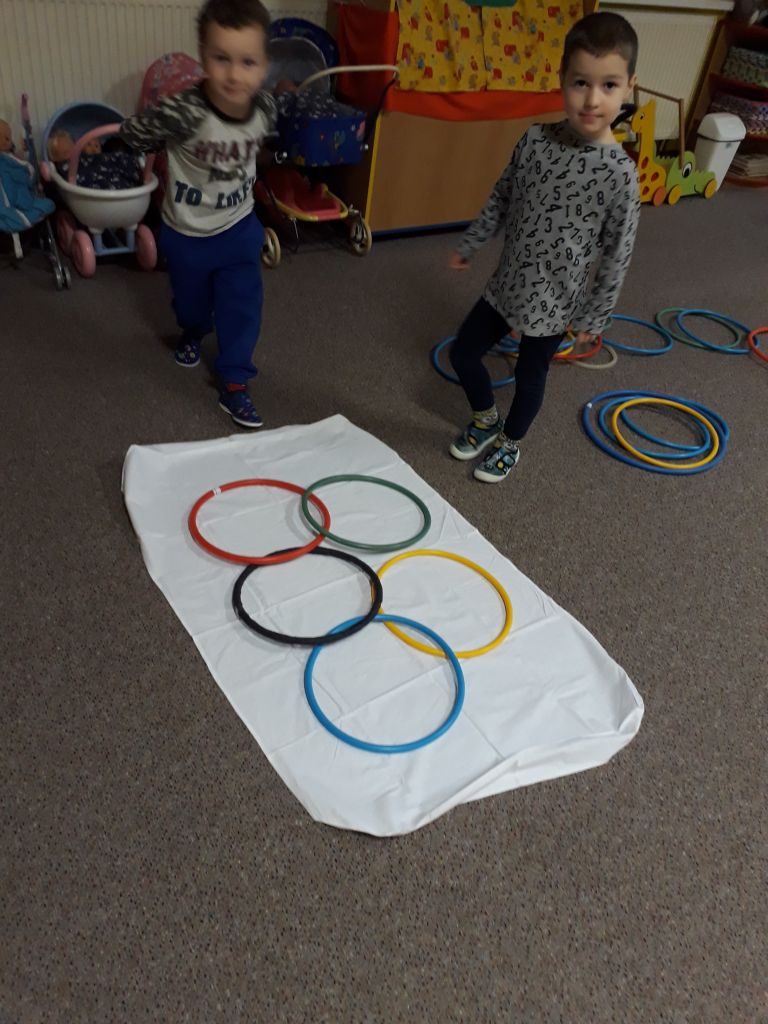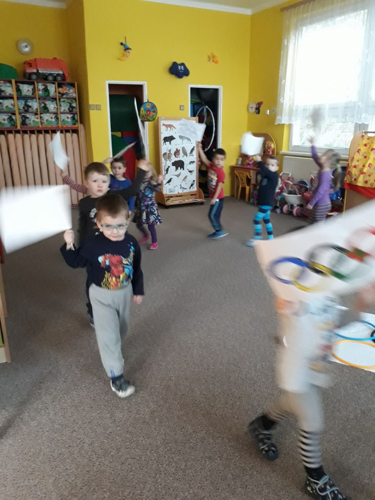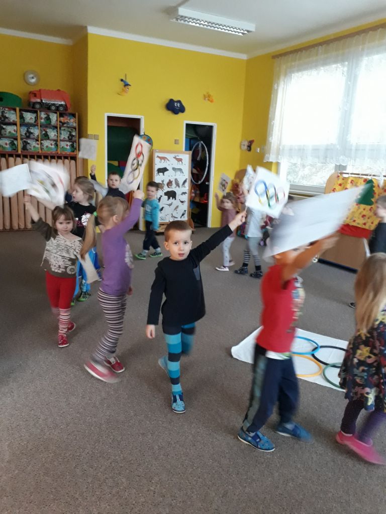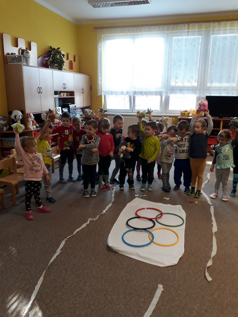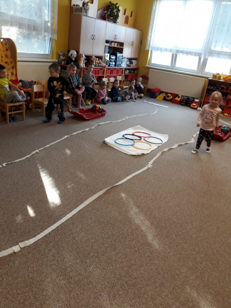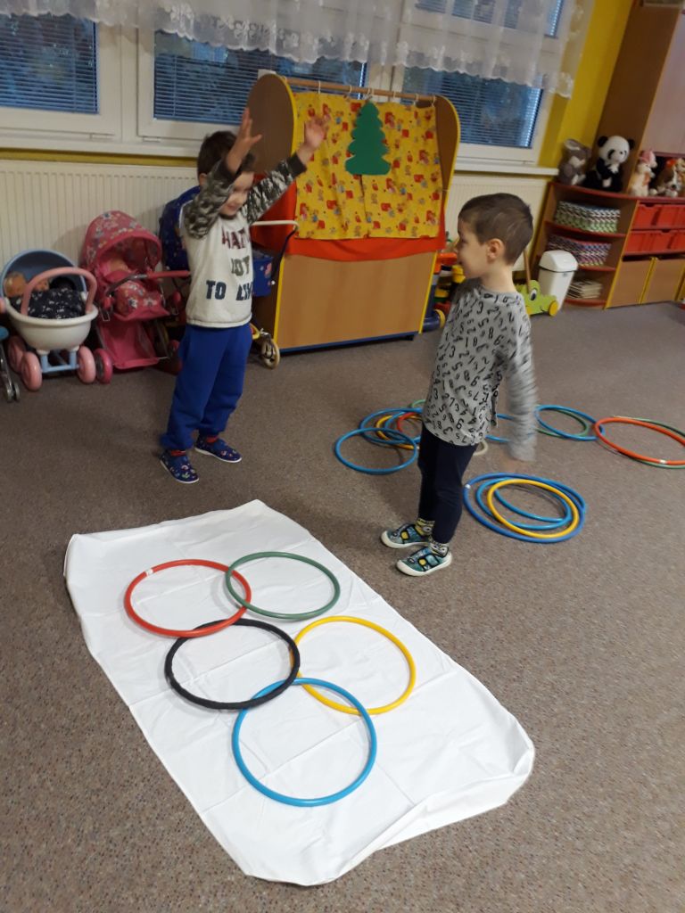 I my ve školce jsme si povídali o probíhajících Zimních olympijských hrách a tak jsme se rozhodli uspořádat si vlastní - Školkové olympijské hry. Pořádně jsme si je užili.