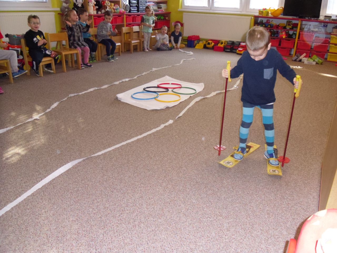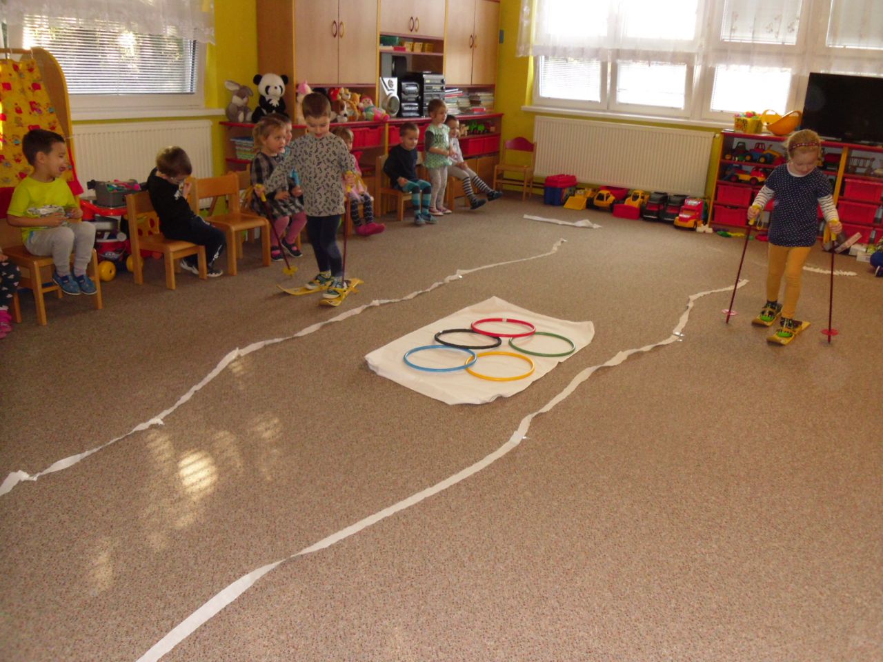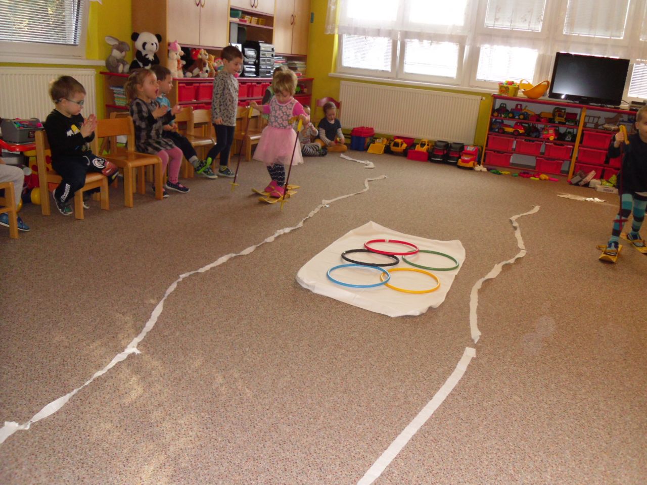 I my ve školce jsme si povídali o probíhajících Zimních olympijských hrách a tak jsme se rozhodli uspořádat si vlastní - Školkové olympijské hry. Pořádně jsme si je užili.