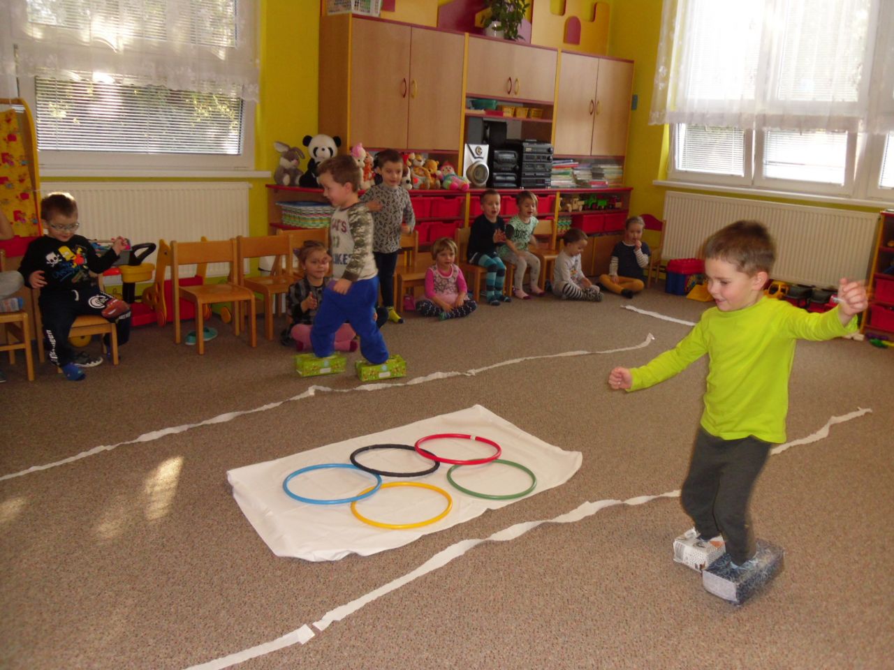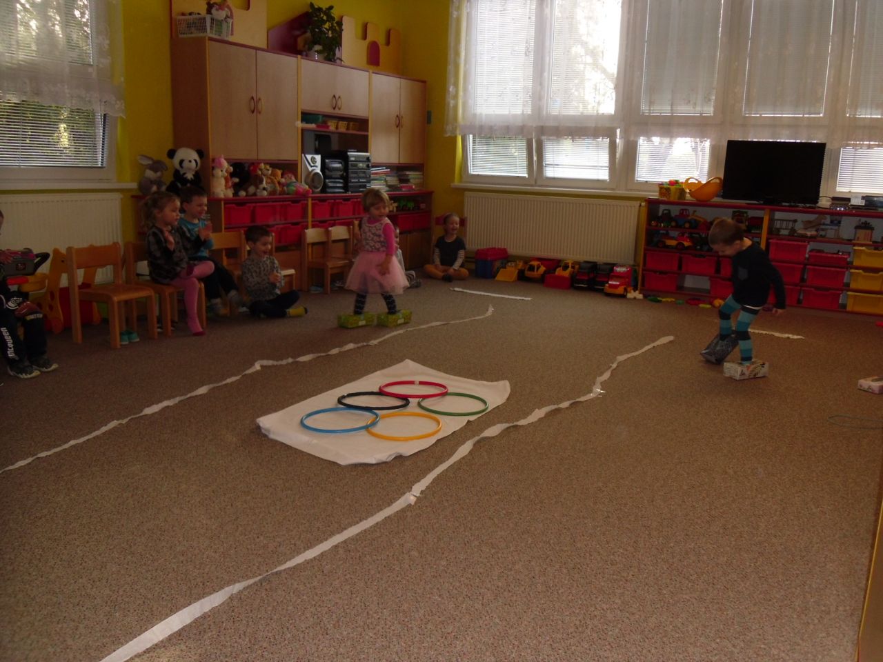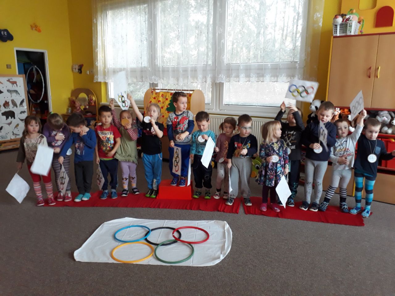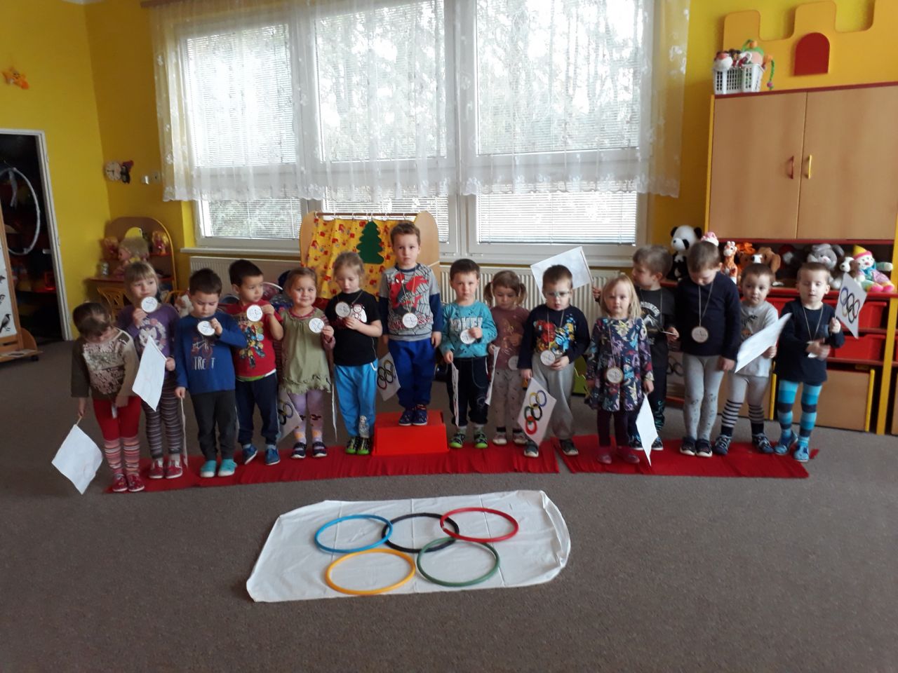 I my ve školce jsme si povídali o probíhajících Zimních olympijských hrách a tak jsme se rozhodli uspořádat si vlastní - Školkové olympijské hry. Pořádně jsme si je užili.