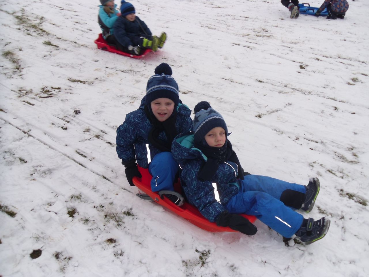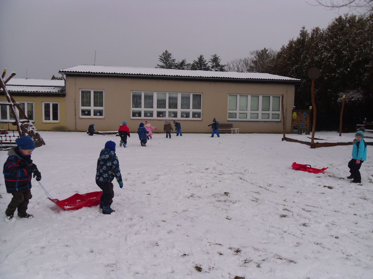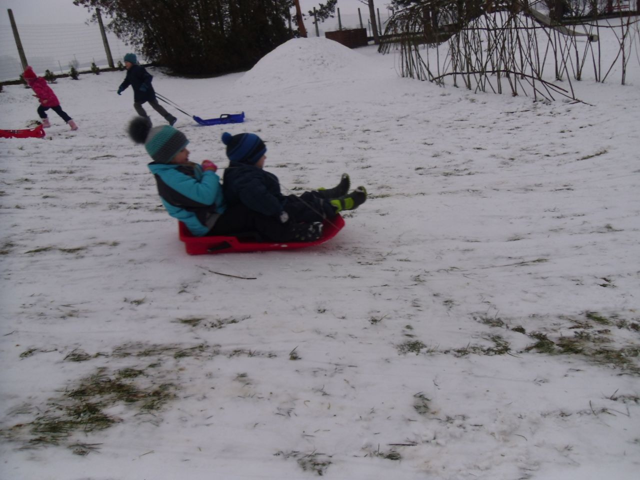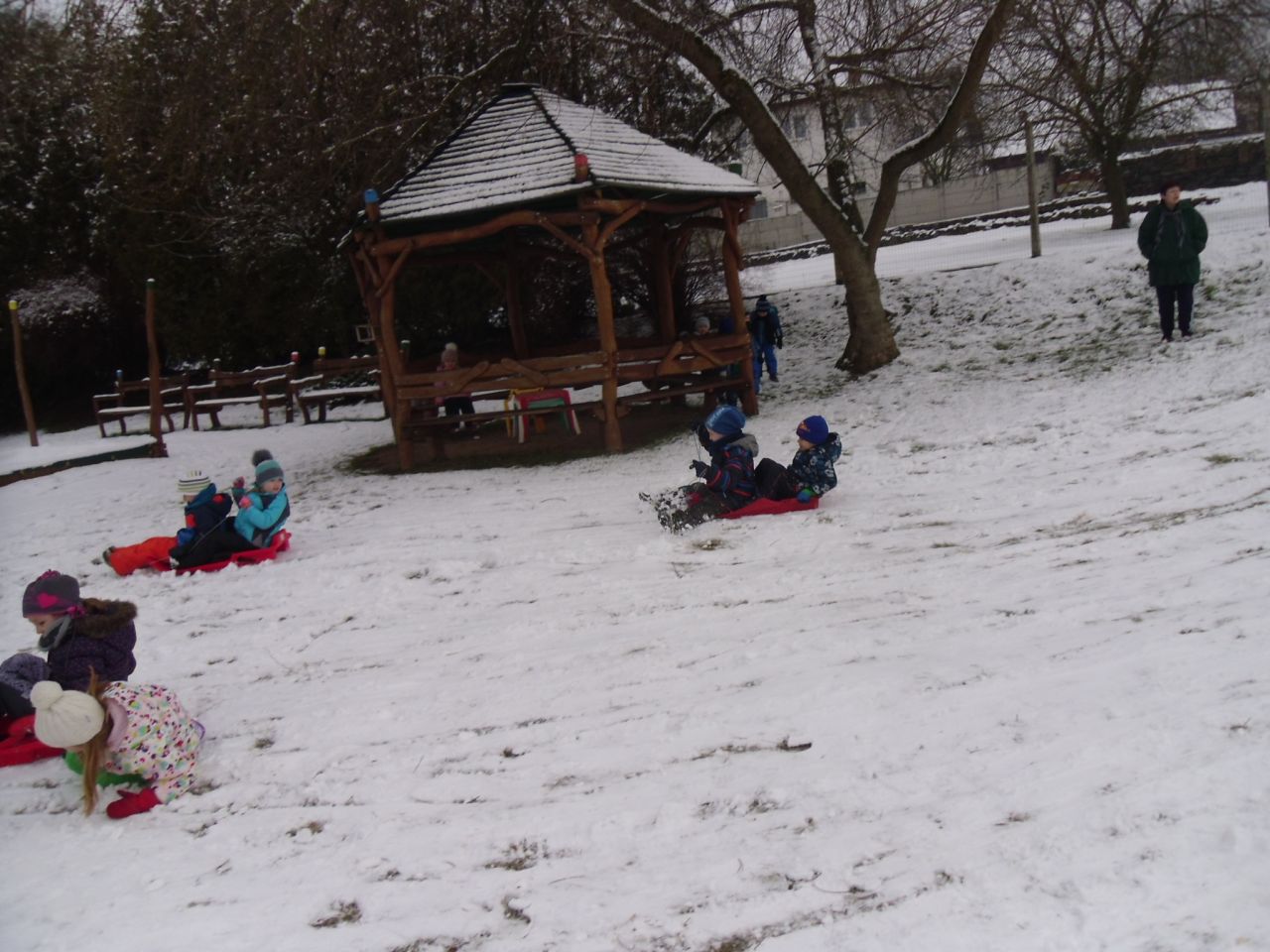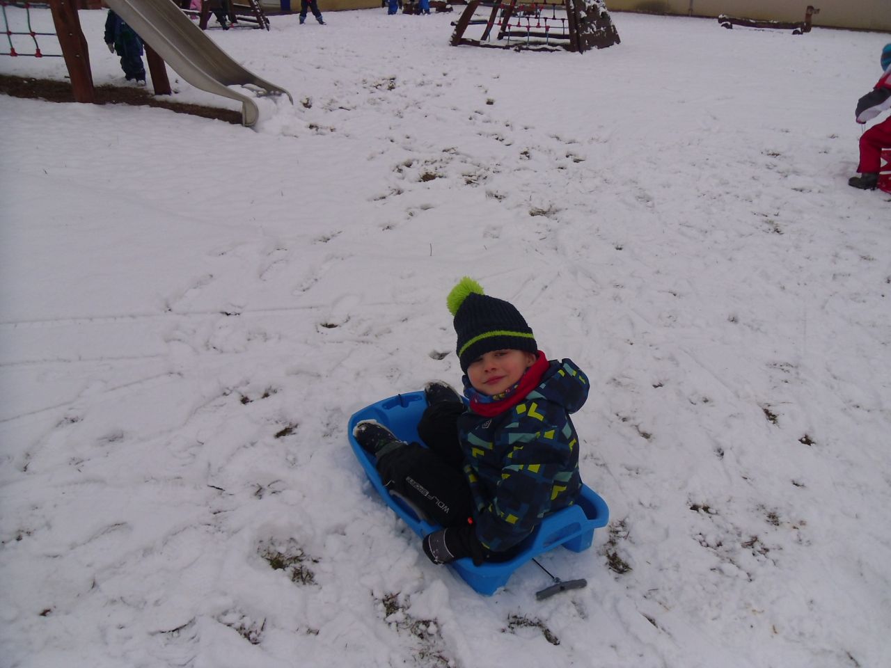 Konečně, i nám v Žehušicích, napadlo trochu sněhu, takže si to musíme naplno užít. Někteří hned popadli boby, jiní dali přednost kreativnímu sněhovému tvoření.